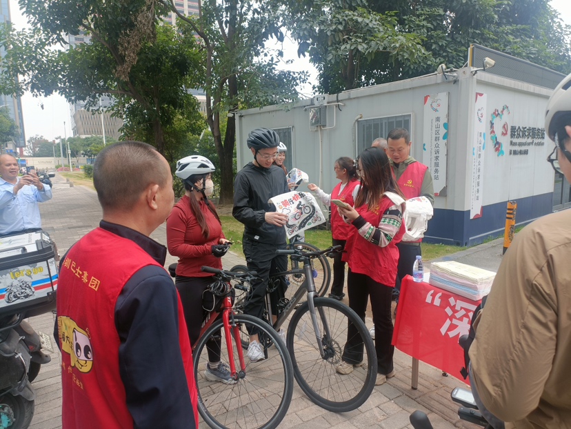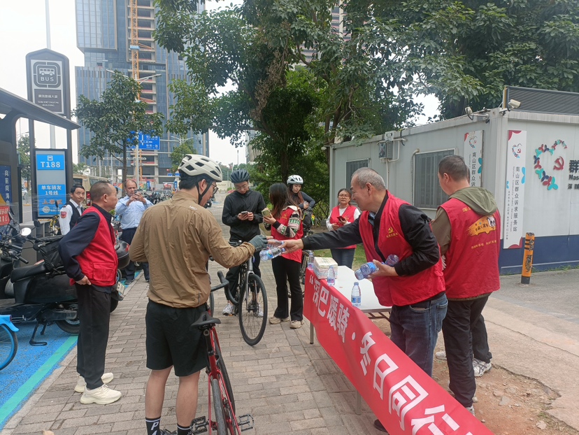 活动现场,身着红马甲的志愿者们热情满满,积极推广“单车骑友1号线”和“爱拼巴”定制骑行服务。他们详细介绍线路新亮点、沿途绝美风景图以及实用的骑行安全小贴士,让市民对定制公交的灵活便捷有了更深刻的认识,强化了深巴跨市出行与骑行联动的品牌印象,传递出便捷、暖心的出行理念。