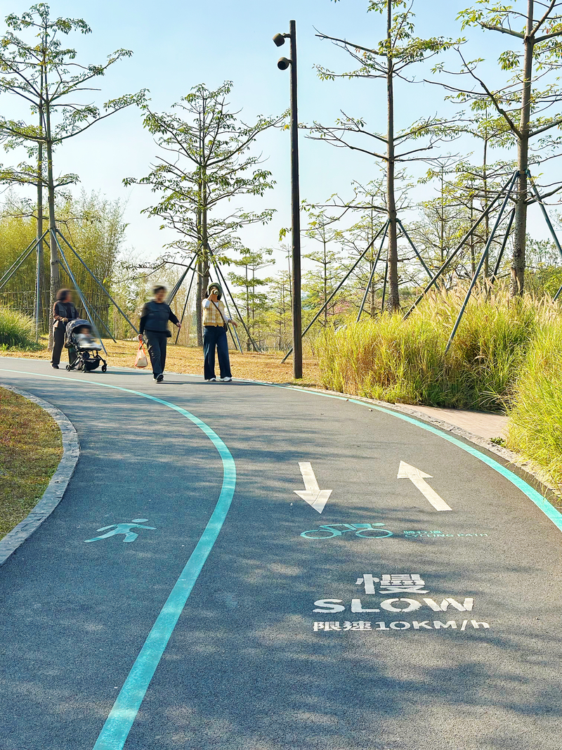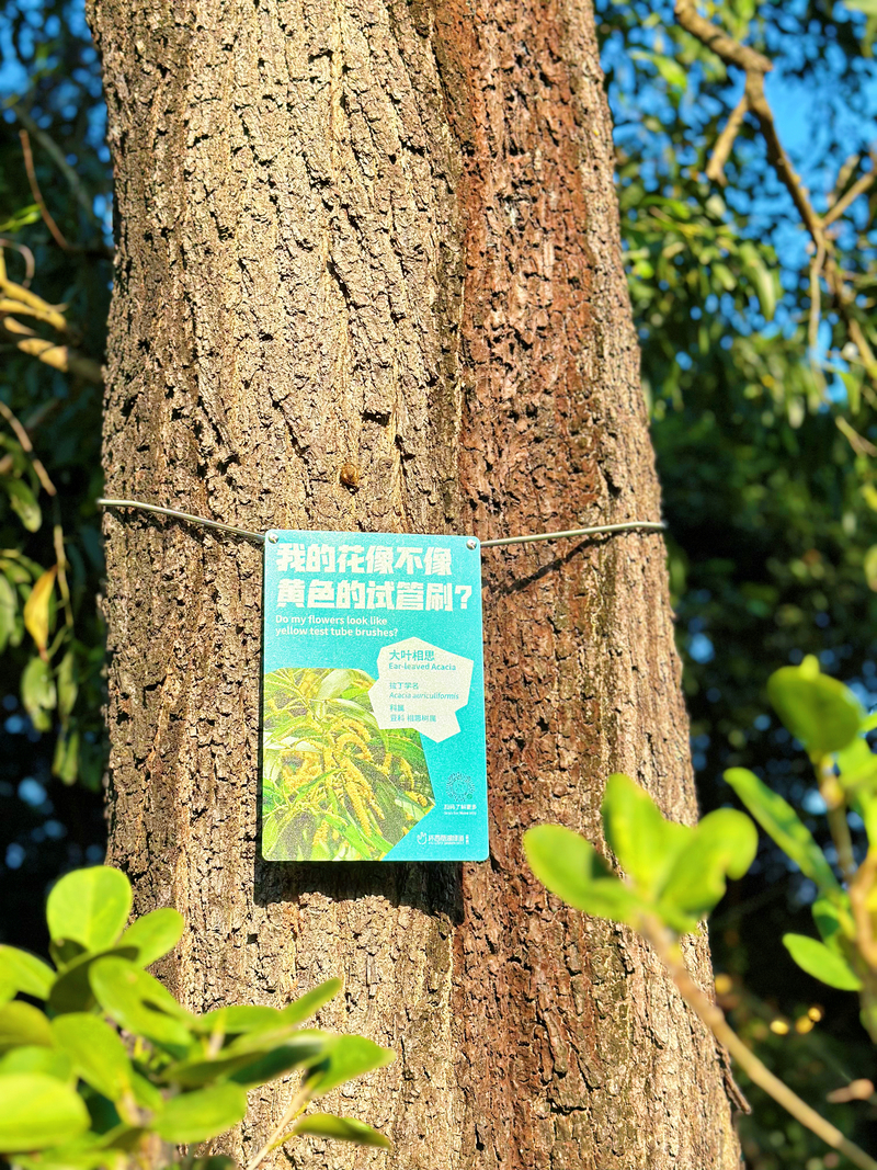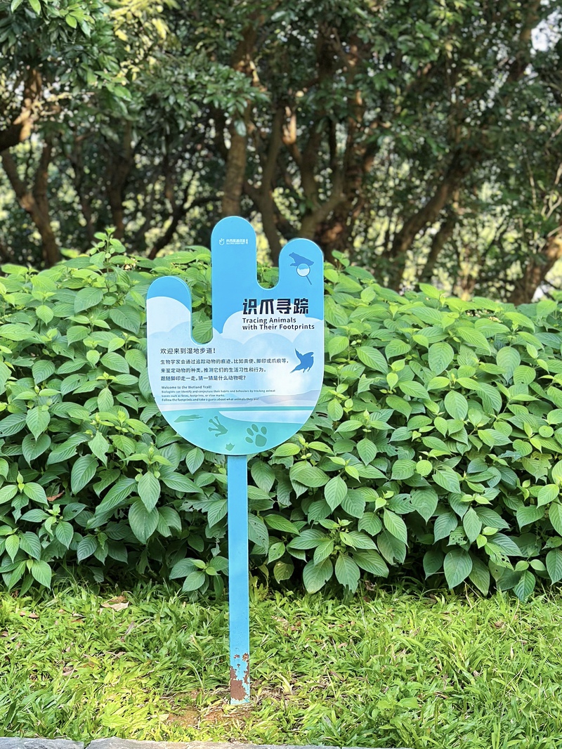 绿道沿途暗藏“自然探索课堂”:低头可见“识爪寻踪”线索,沿故事线搜寻小小野趣;抬头树干悬挂趣味身份牌,大人孩子边玩边学,一路惊喜。
