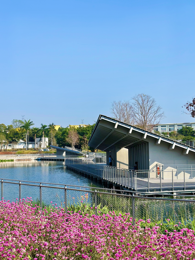 登上瞭望平台远眺西丽湖,湖光山色尽收眼底;或是移步亲水平台,在湖边的空调房里静观湖景,看水中睡莲绽放,时光也在此刻放慢了脚步。