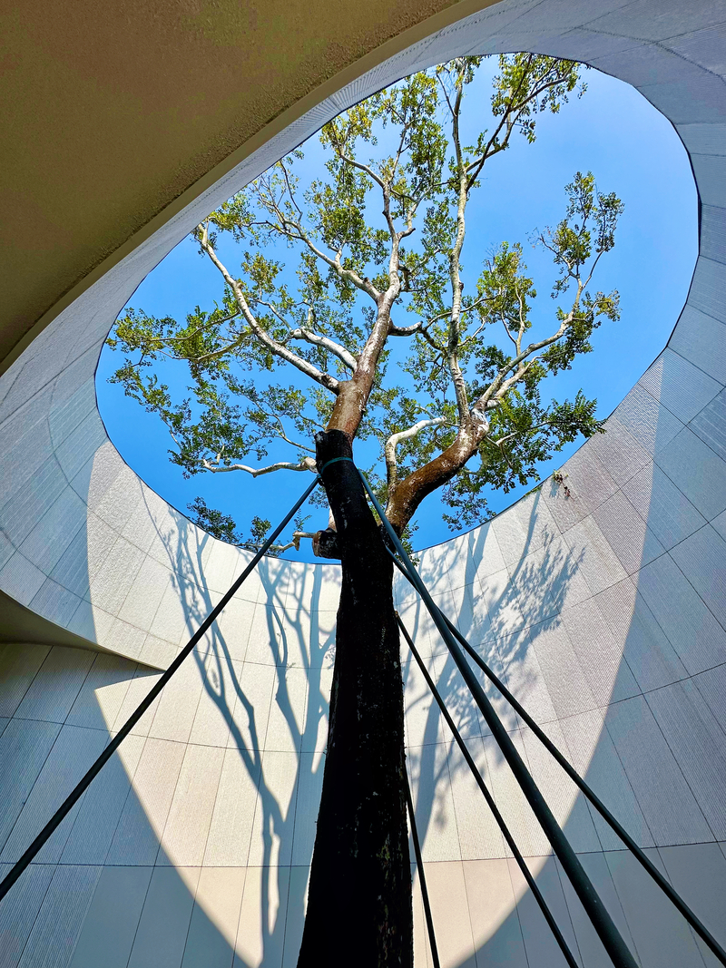 横塘垂砚建筑造型独特,如墨笔横卧湖面。这里曾是受污染的人工鱼塘,如今采用“水下森林”技术,华丽变身为可净化水域的蓝岛。