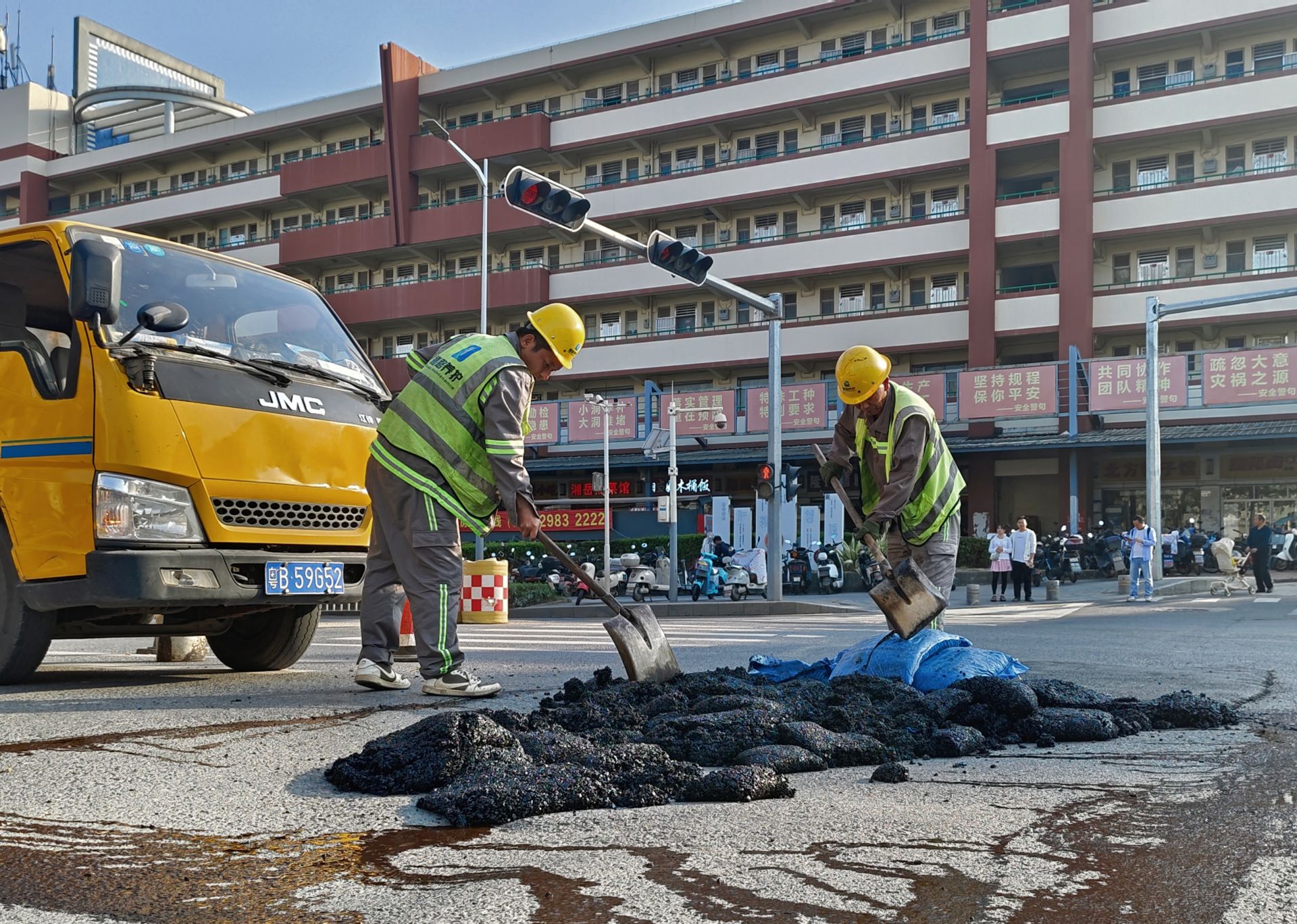 12月9日,本报记者实地走访发现,桂月路与竹山路交叉口确实存在局部路面坑槽病害。当天下午,深圳市交通运输局龙华管理局已派出道路养护队伍到场,对约4平方米的破损路面采取铺设应急沥青的临时处理措施。