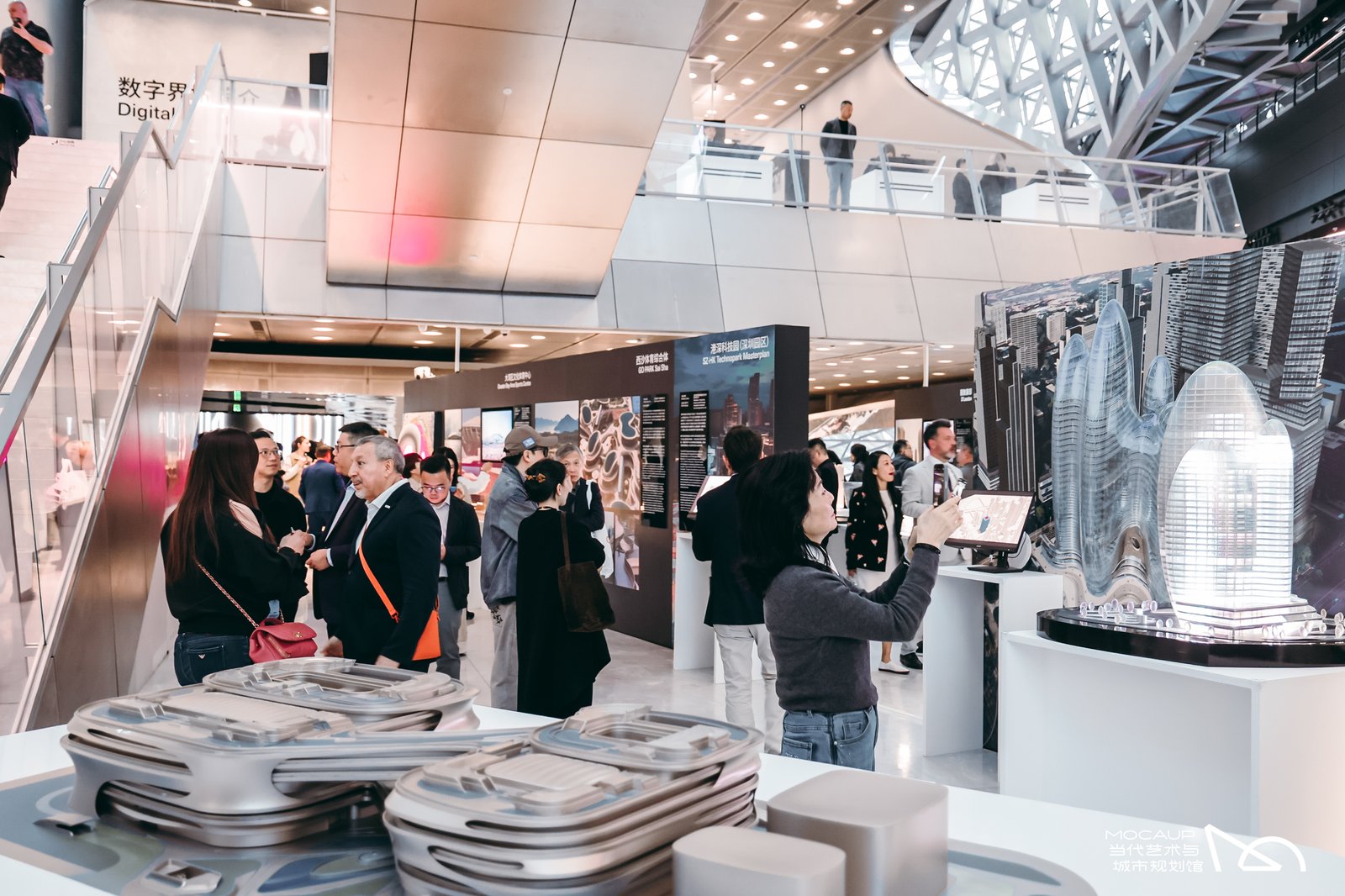 同时,展览聚焦该事务所在人工智能、数据驱动设计、虚拟现实与沉浸式交互等前沿领域的探索,展示这些技术如何深度介入建筑设计与决策过程。通过五个主题模块——“扎哈之城:粤港澳大湾区”“都城乌托邦”“头脑风暴”“实时分析配置器”“展览数字孪生”,展览呈现了物理建造与虚拟空间之间不断深化的互动关系。