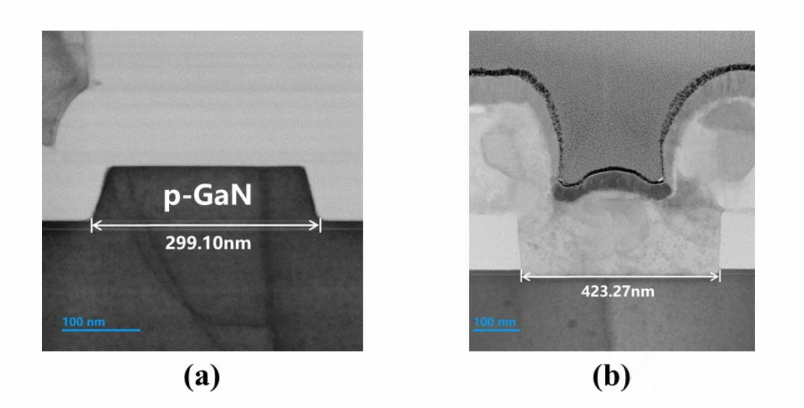 面对这一挑战,深圳平湖实验室低压氮化镓研发团队依托实验室先进的8英寸硅基GaN科研中试平台,采用p-GaN增强型技术路径,先后攻克了一系列长期制约产业化的关键技术难题,涉及高迁移率外延技术、欧姆区二次外延技术、小尺寸线条制备技术等。其中,在小尺寸线条制备技术上,成功实现0.3微米栅线条与0.4微米欧姆开口线条制备。