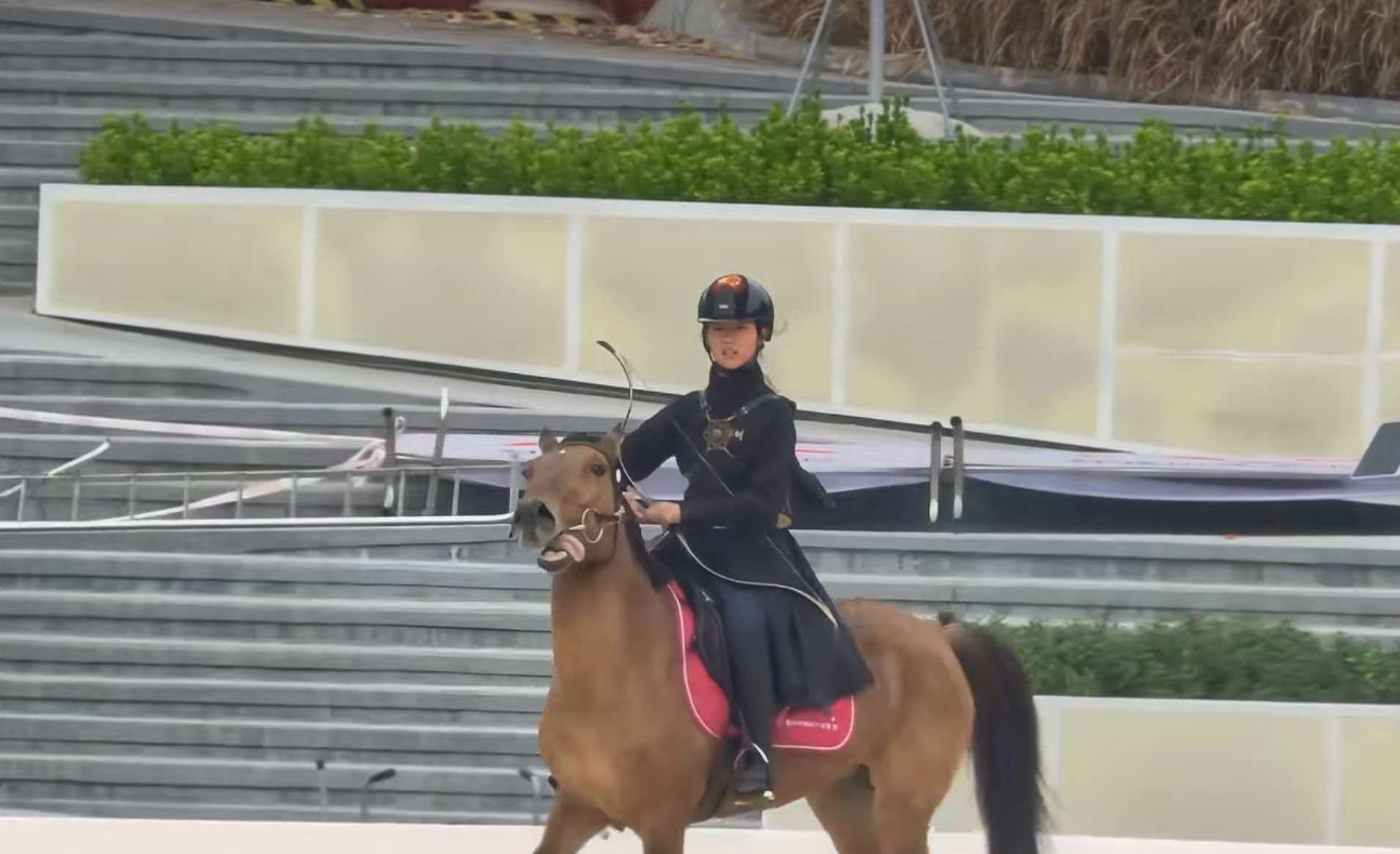 最近,这位英姿飒爽的深圳骑射“小孩姐”又出圈——在12月13日举行的2025全国骑射巡回赛总决赛暨环球骑射大师赛马上戏(团体)赛中,吴童雨迎来了第二次国际赛场亮相。面对场地大、马匹兴奋度高、速度难以掌控的挑战,她坦言内心紧张:“这考验我能不能适应马匹的速度。”然而,她最终以12秒内五连射全部精准命中靶心的惊艳表现,助力中国队直接晋级。