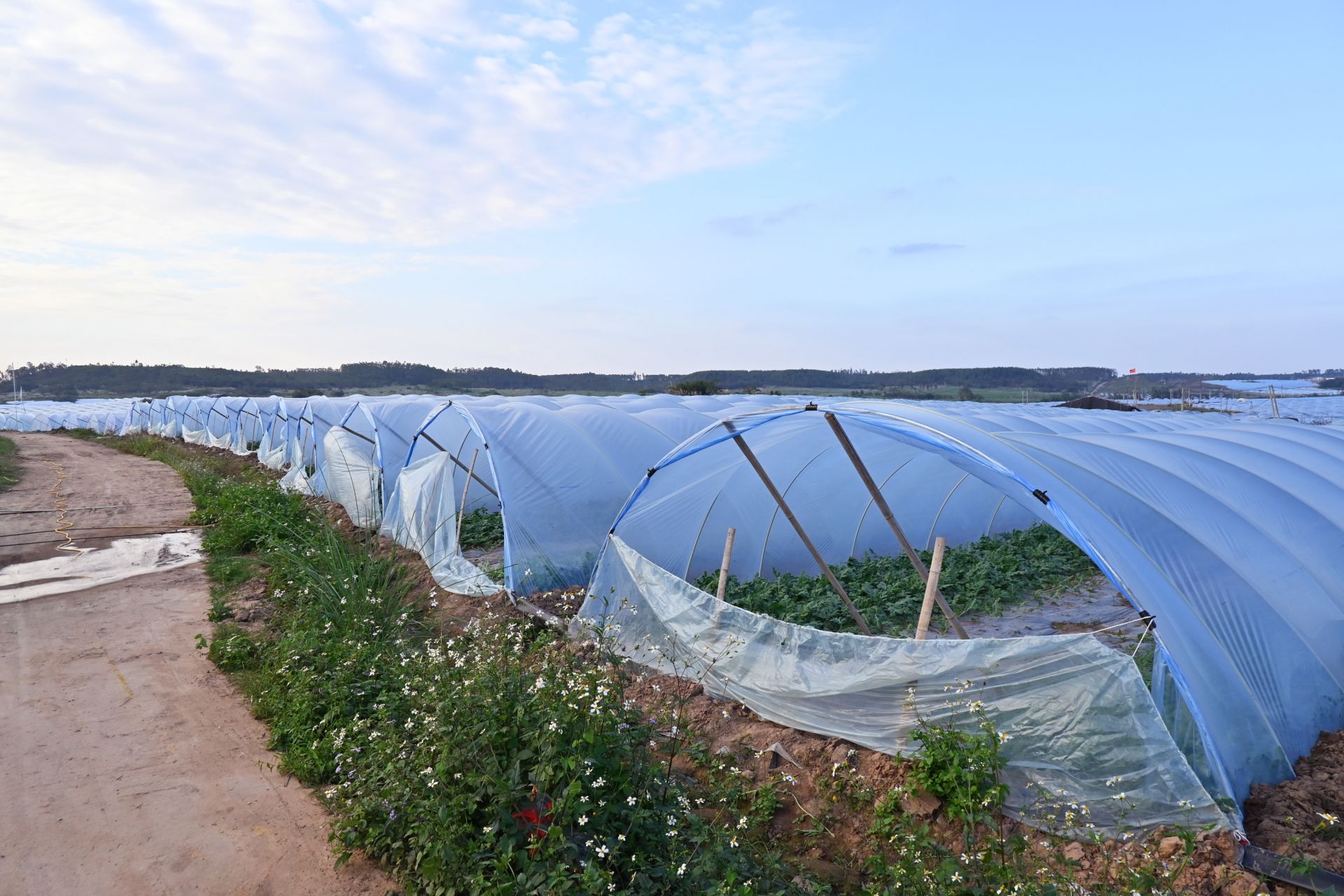 12月16日,深圳特区报记者从海口市出发,驱车一个半小时抵达海南儋州工业园王五片区。穿过双向六车道的“深儋大道”,来到王五镇芭根村、九龙村、枝根村,随处可见白色蔬菜大棚在烈日下熠熠生辉。这片1万多亩的深农集团海南儋州供深港特色农产品基地,是深农集团“一基地一园一中心”战略全国最大的项目。
