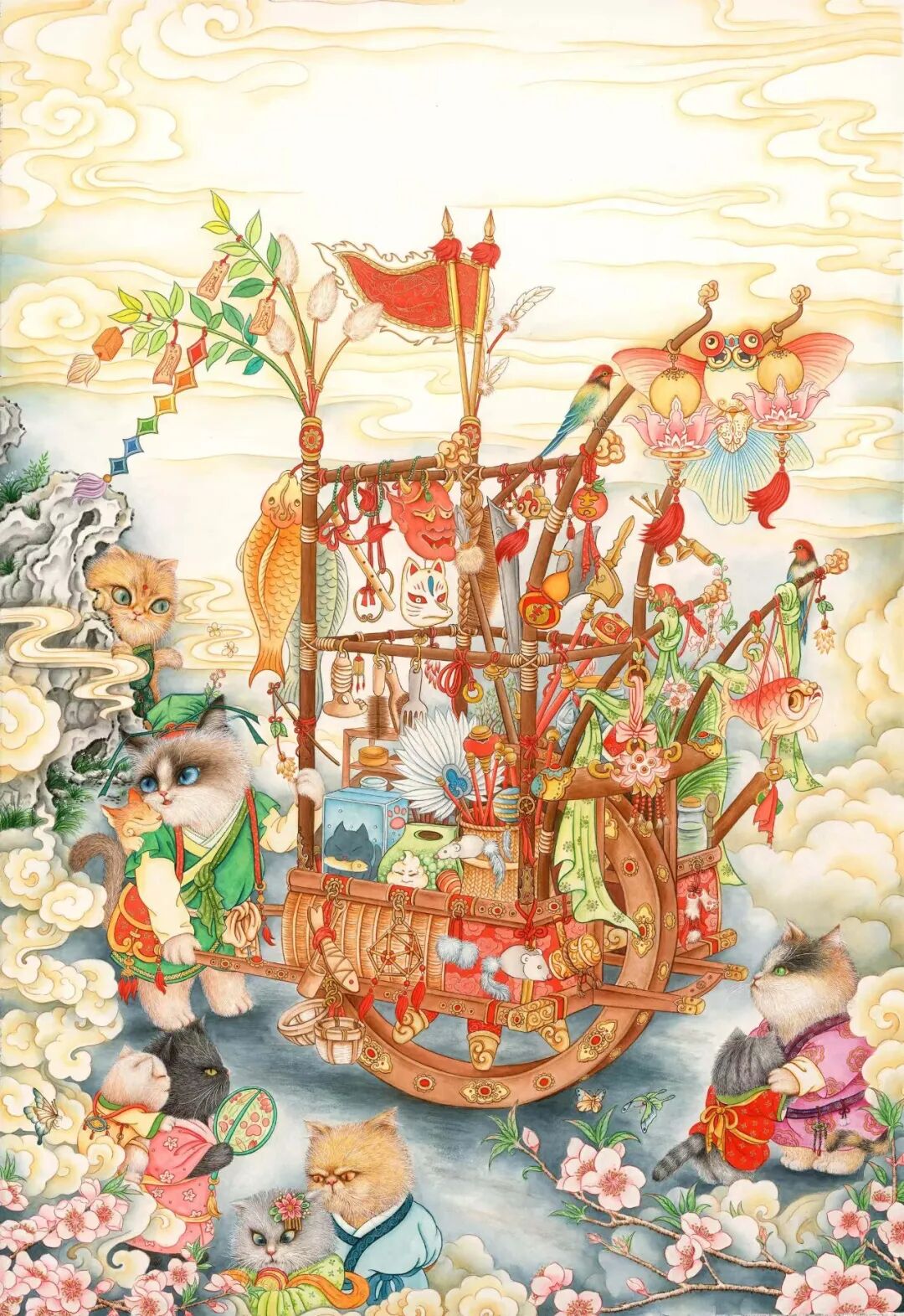 韦经晓 《货郎图》 70cm×50cm 工笔画 2025