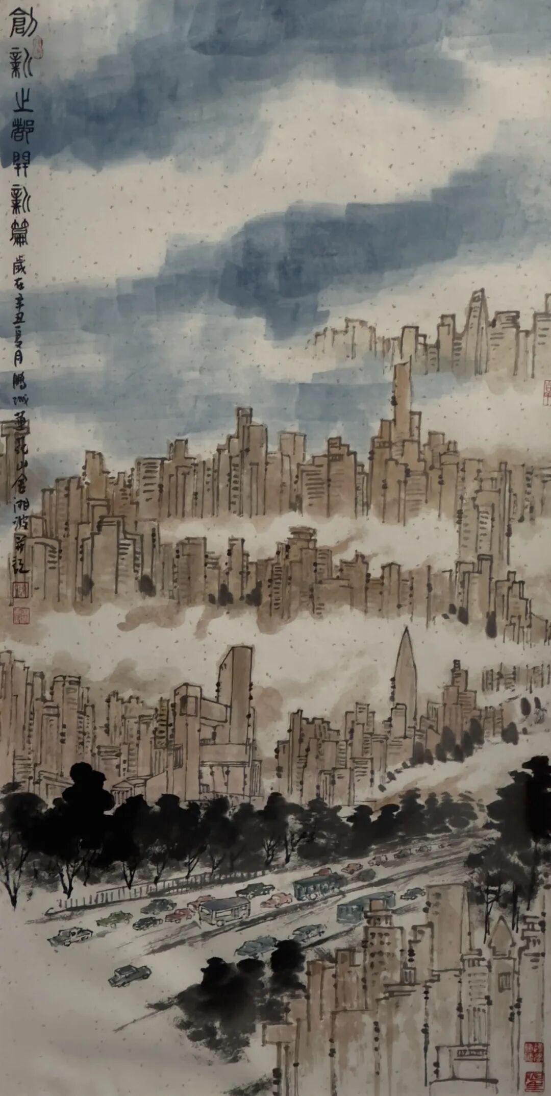 陈湘波 《创新之都开新篇》 136cm×68cm 纸本设色 2021