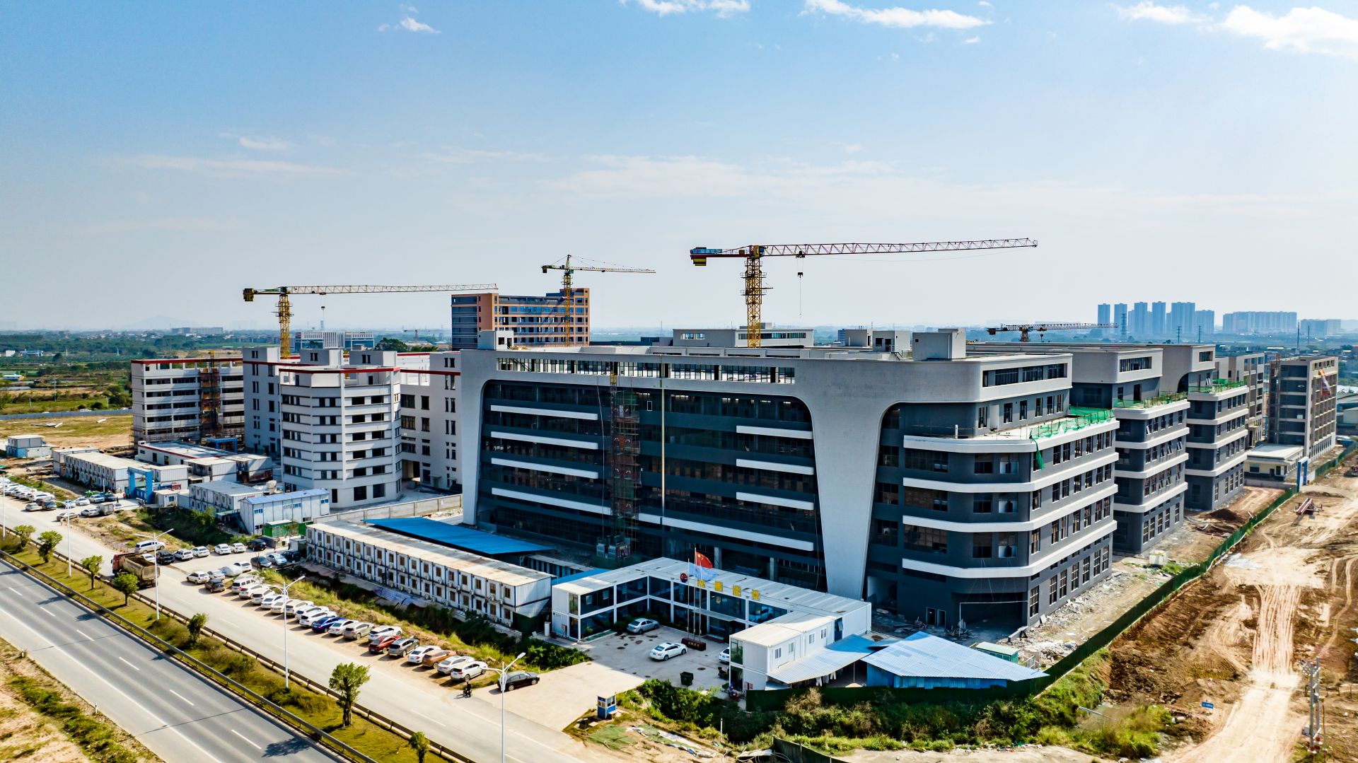 12月,粤中腹地的阳光依旧灿烂夺目,博西园区的施工现场也热火朝天,记者留意到,一栋栋厂房的楼顶造型起伏连绵,与远处的罗浮山相映成趣。