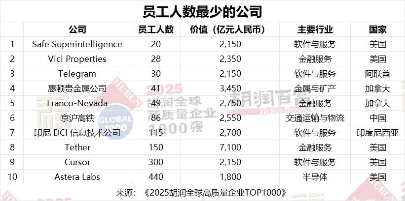 今年榜单最具颠覆性的看点,莫过于“超精益企业”的崛起。20名员工的Safe Superintelligence、30名员工的Telegram、150名员工的Tether,这些团队规模不足千人的企业,价值均突破1800亿元,平均每位员工创造10亿美元价值。这种“小而强”的模式,彻底打破了“规模决定价值”的传统认知,成为数字经济时代的新范式。