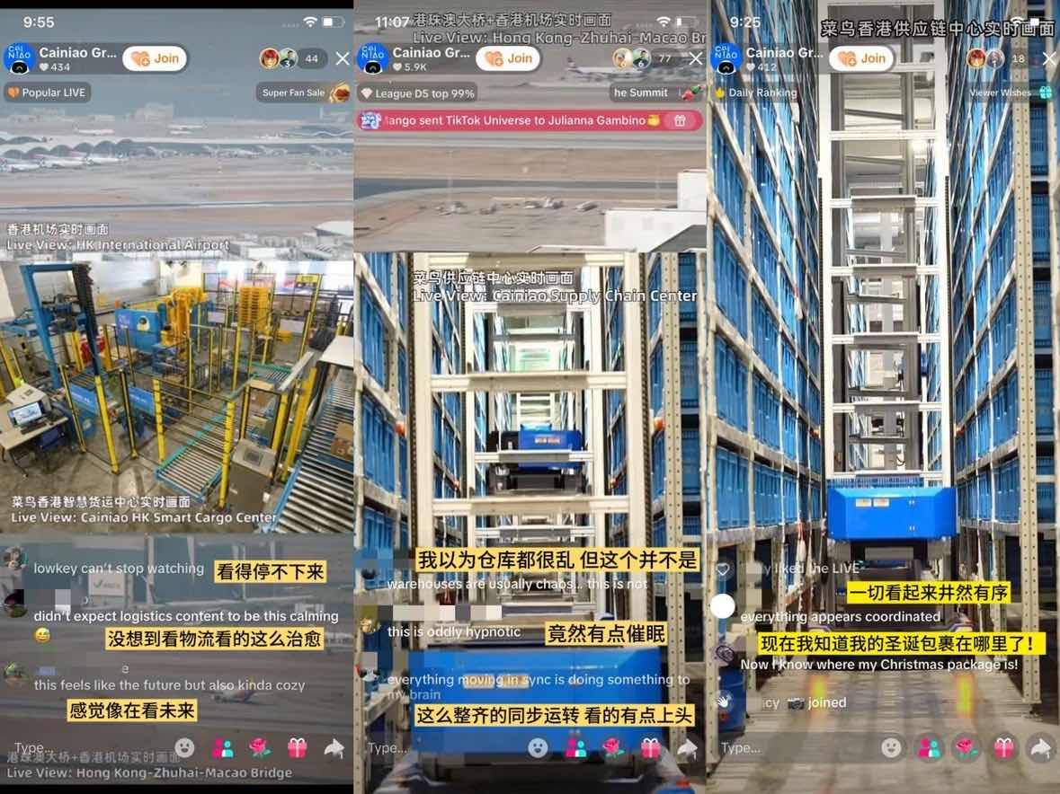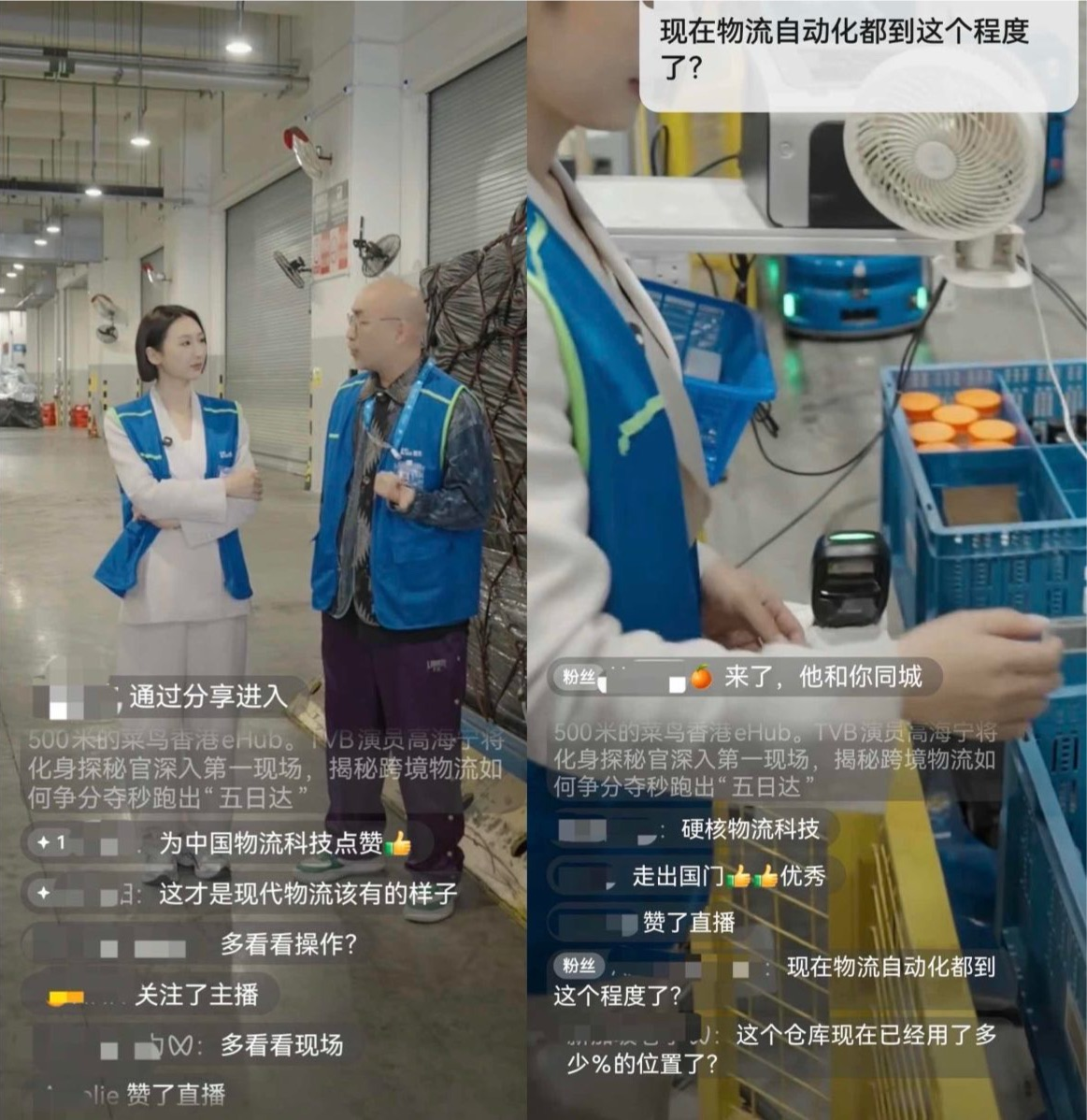 12月17日,菜鸟开启了一场持续数小时的“云监工”慢直播,带全球观众走进菜鸟香港智慧港。而全球货运量第一的香港国际机场智慧物流枢纽,也首次以沉浸式直播形式呈现在公众眼前,吸引了来自美国、英国、新加坡等多个国家和地区的几十万网友在线围观。香港TVB 艺人高海宁也作为特邀探秘官参与直播,亲身体验无人物流的高效运转,揭开国货出海“五日达”背后的提速密码。