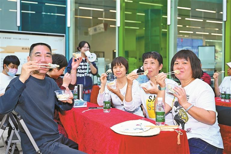 ▲市民品尝自己亲手包的水饺。