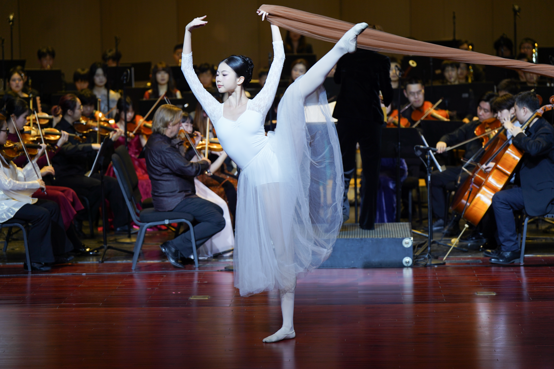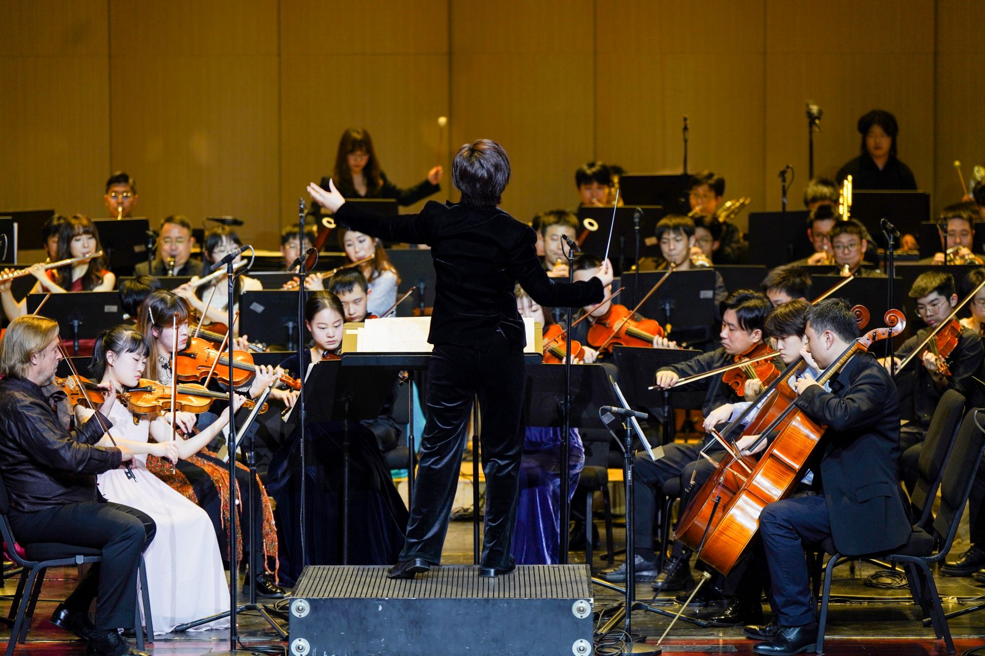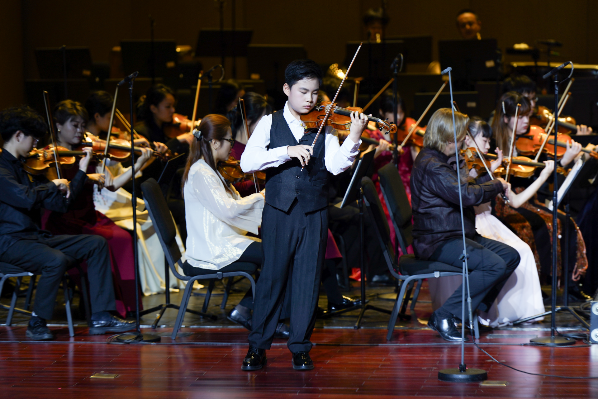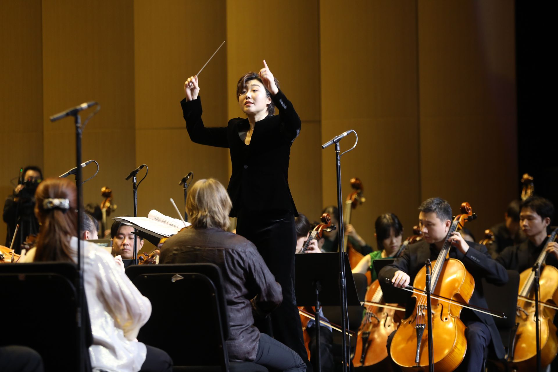 当晚,由广州交响乐团常任指挥、新生代指挥家崔琳涵执棒,深圳艺术学校交响乐团以莫扎特《第二十三钢琴协奏曲》优雅开启这场新年的音乐庆典。这是崔琳涵第二次执棒深圳艺术学校交响乐团。她表示,尽管演奏者们的年龄横跨小学到高中,艺术学习阶段并不相同,但举手投足间颇见真章,展现出了一种可贵的专注状态与专业精神。