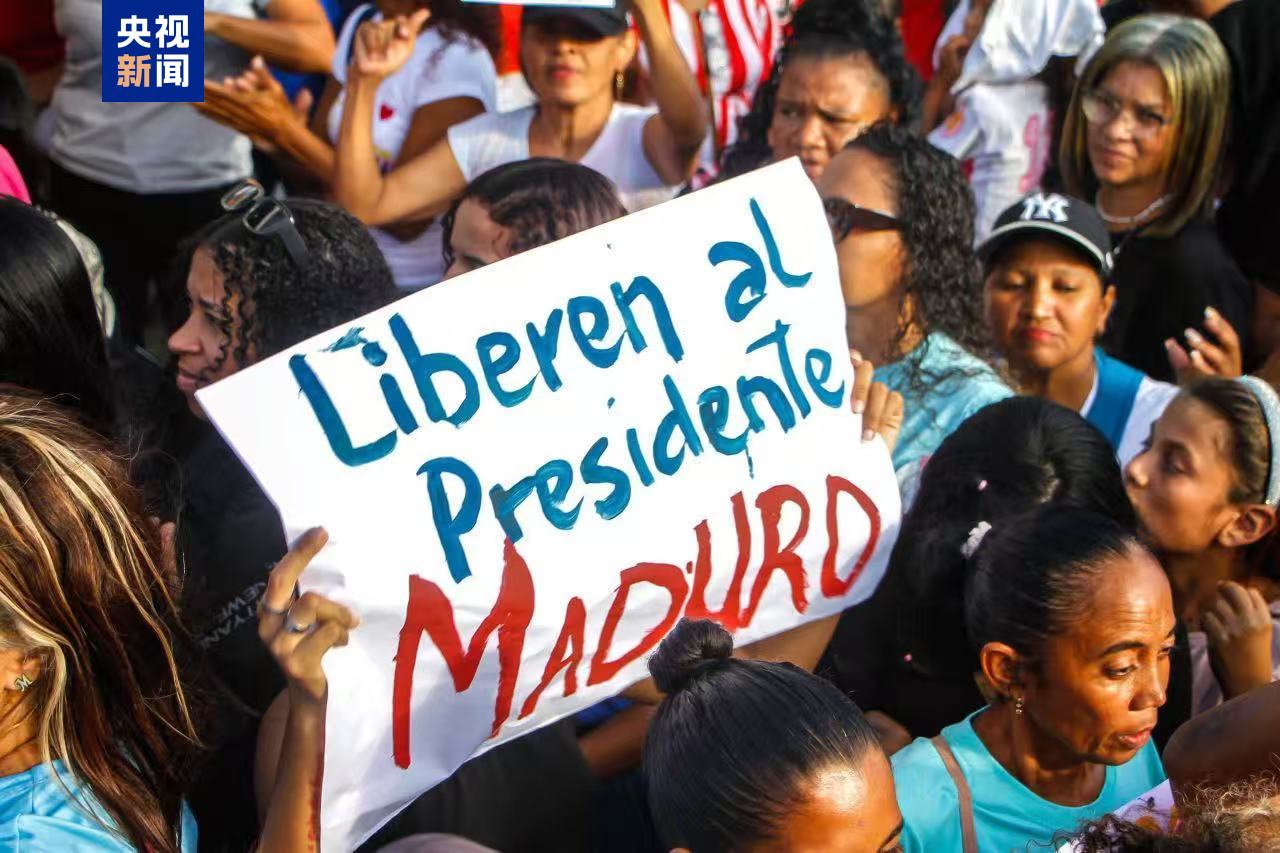 当地时间1月11日,委内瑞拉多地民众举行集会和游行,呼吁美国释放委总统马杜罗及其夫人。