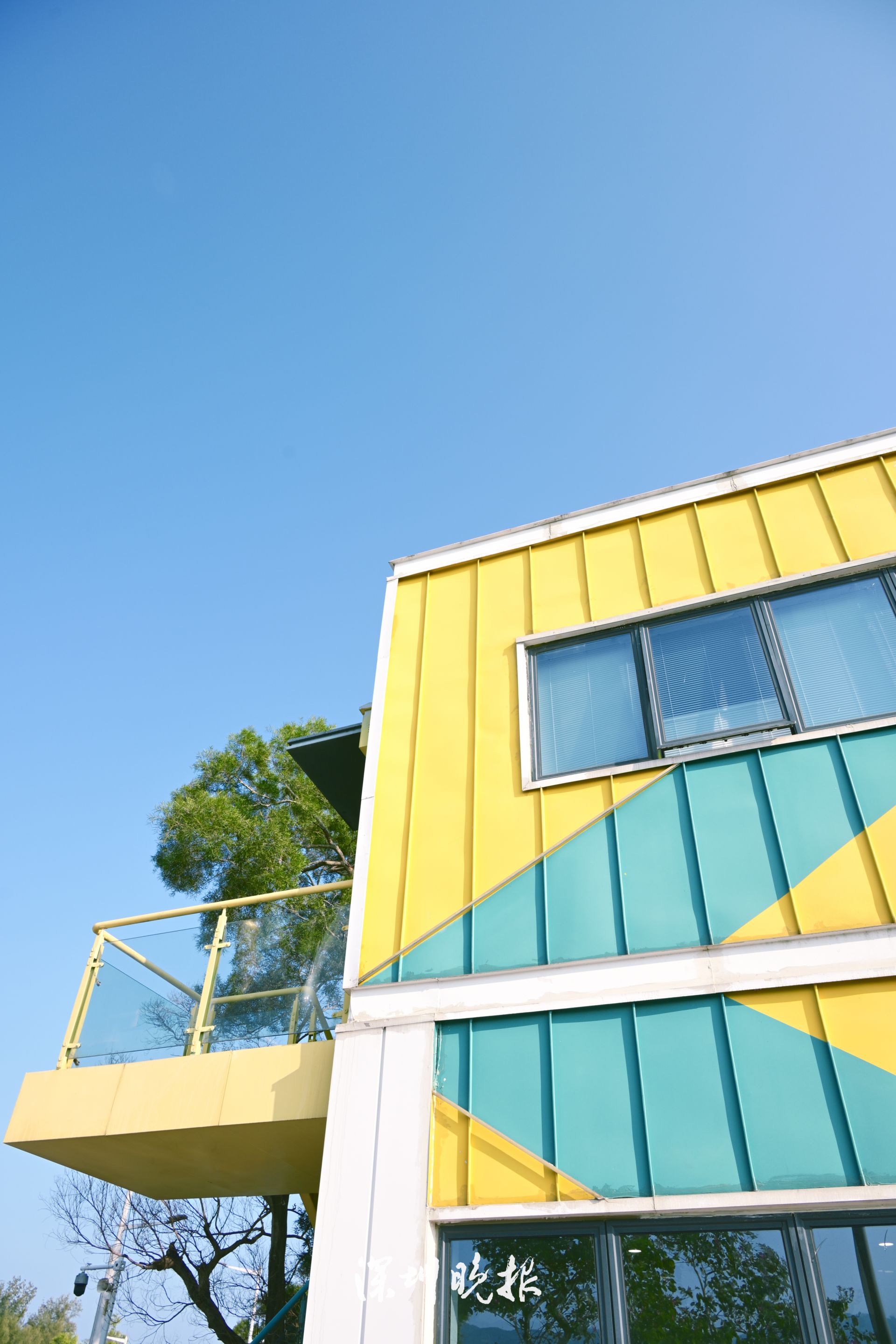 蓝黄色的外观令人眼前一亮,设计灵感来源于盐田港的集装箱,堆叠的集装箱如同一本本垒起来的书。