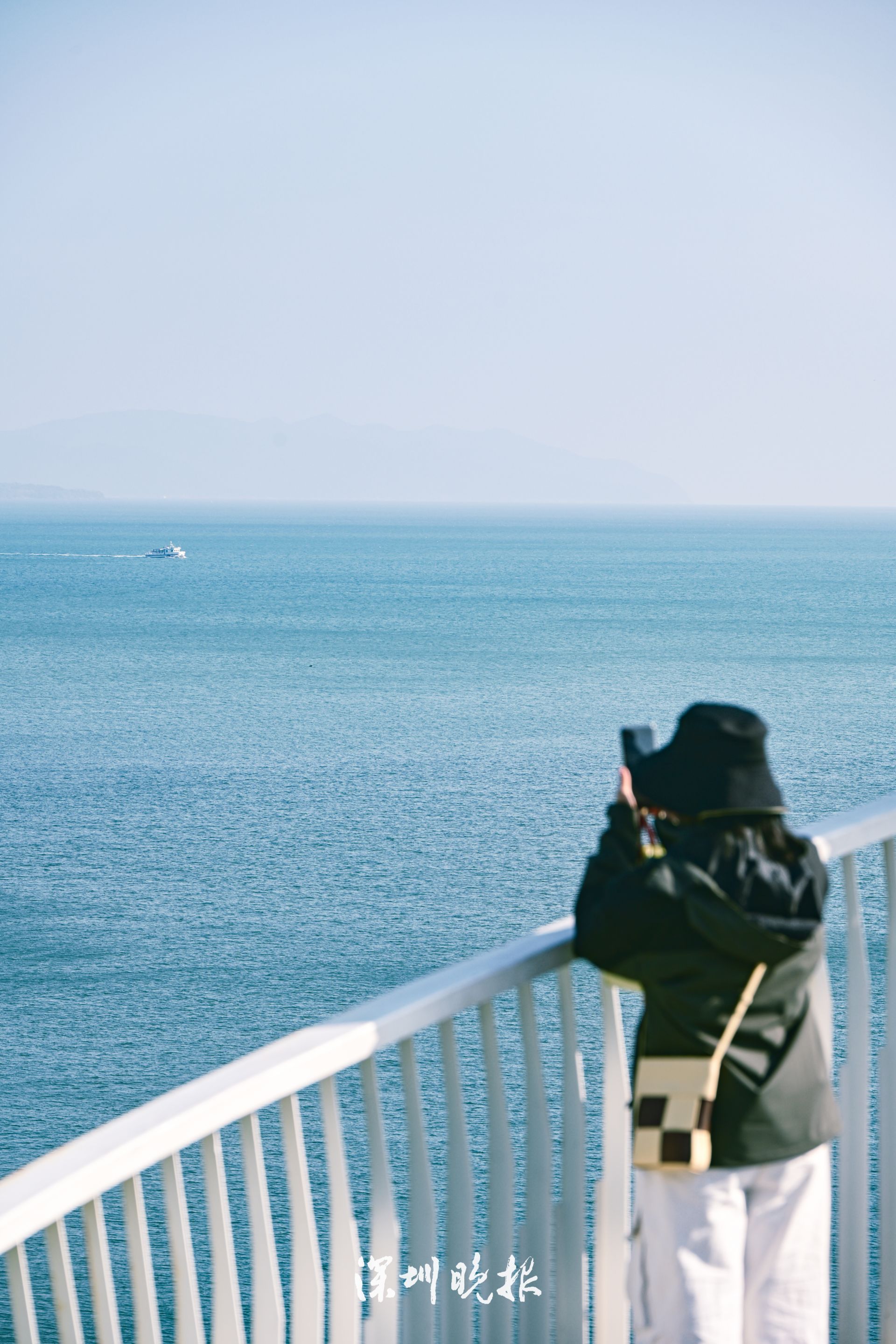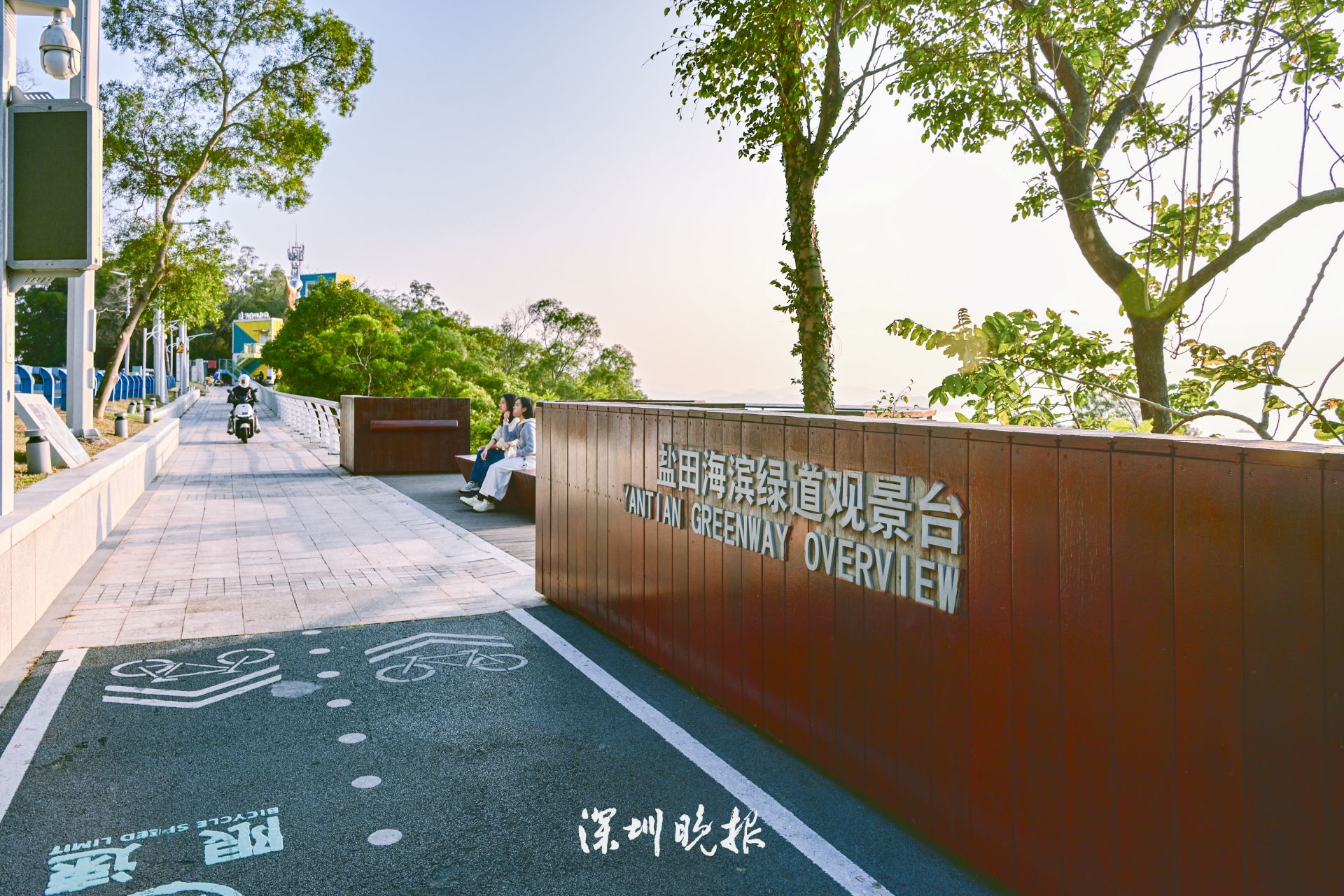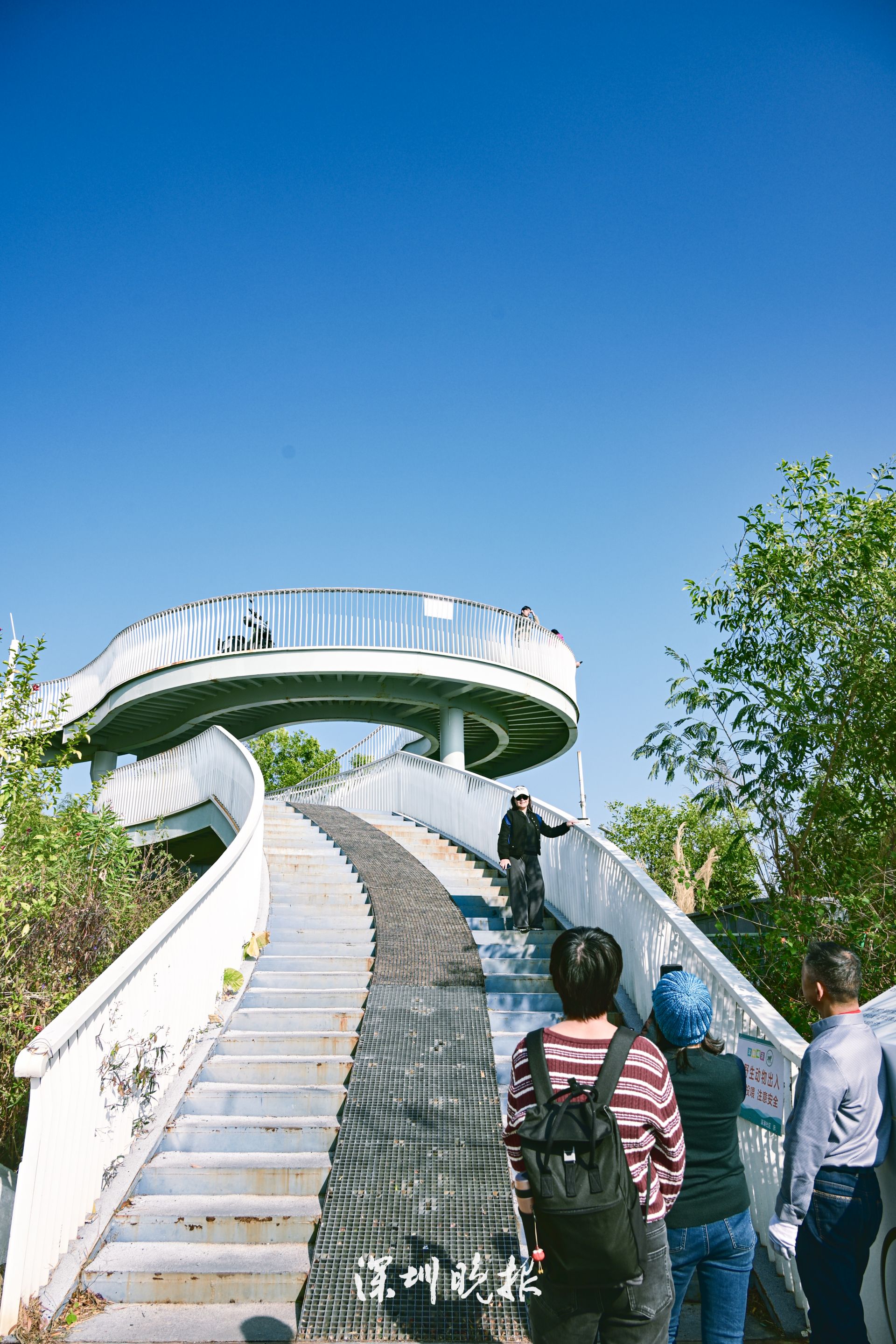 沿着绿道西行,一处白色旋转楼梯跃然眼前——热门打卡点观海平台到了!