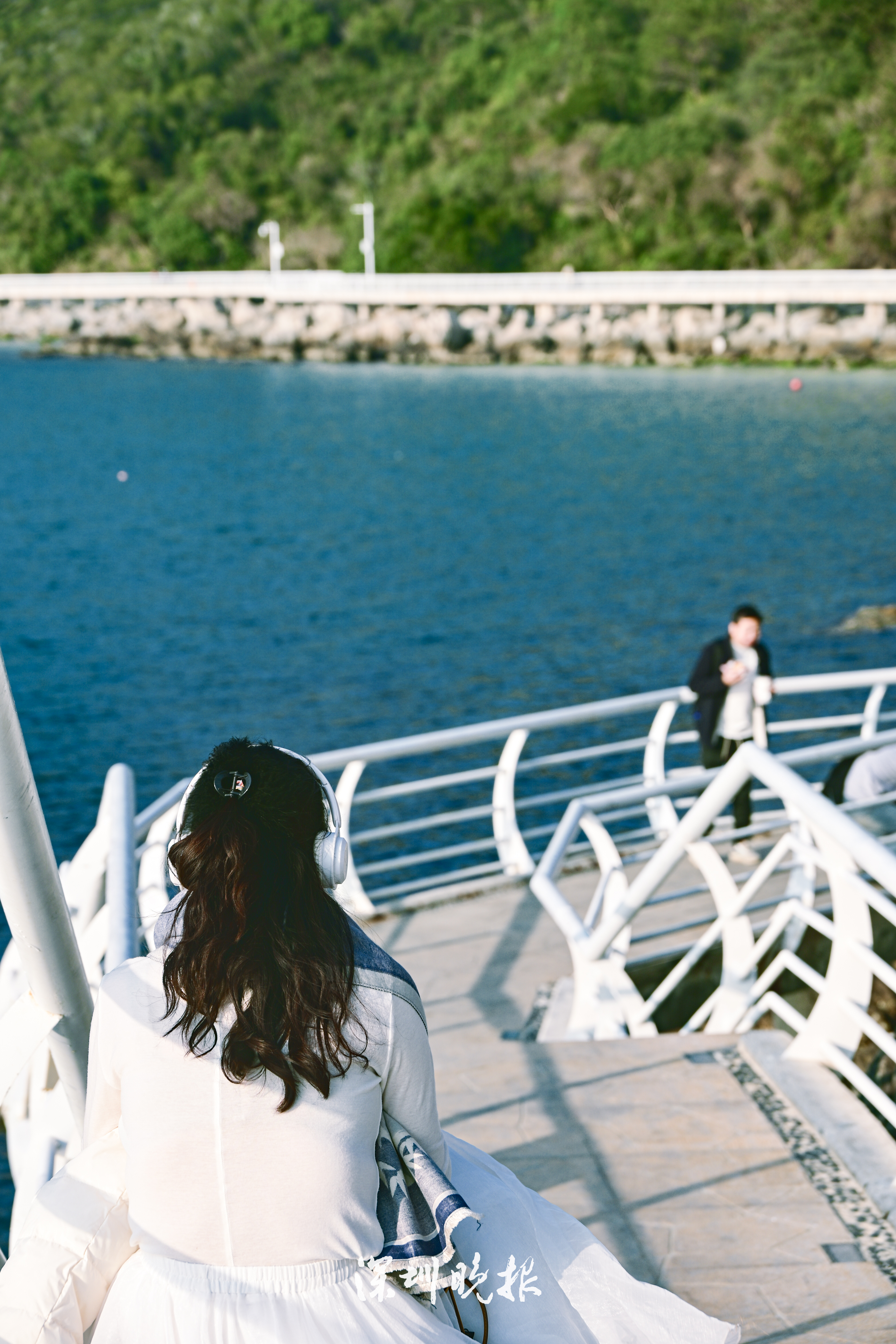 沿着绿道西行,一处白色旋转楼梯跃然眼前——热门打卡点观海平台到了!