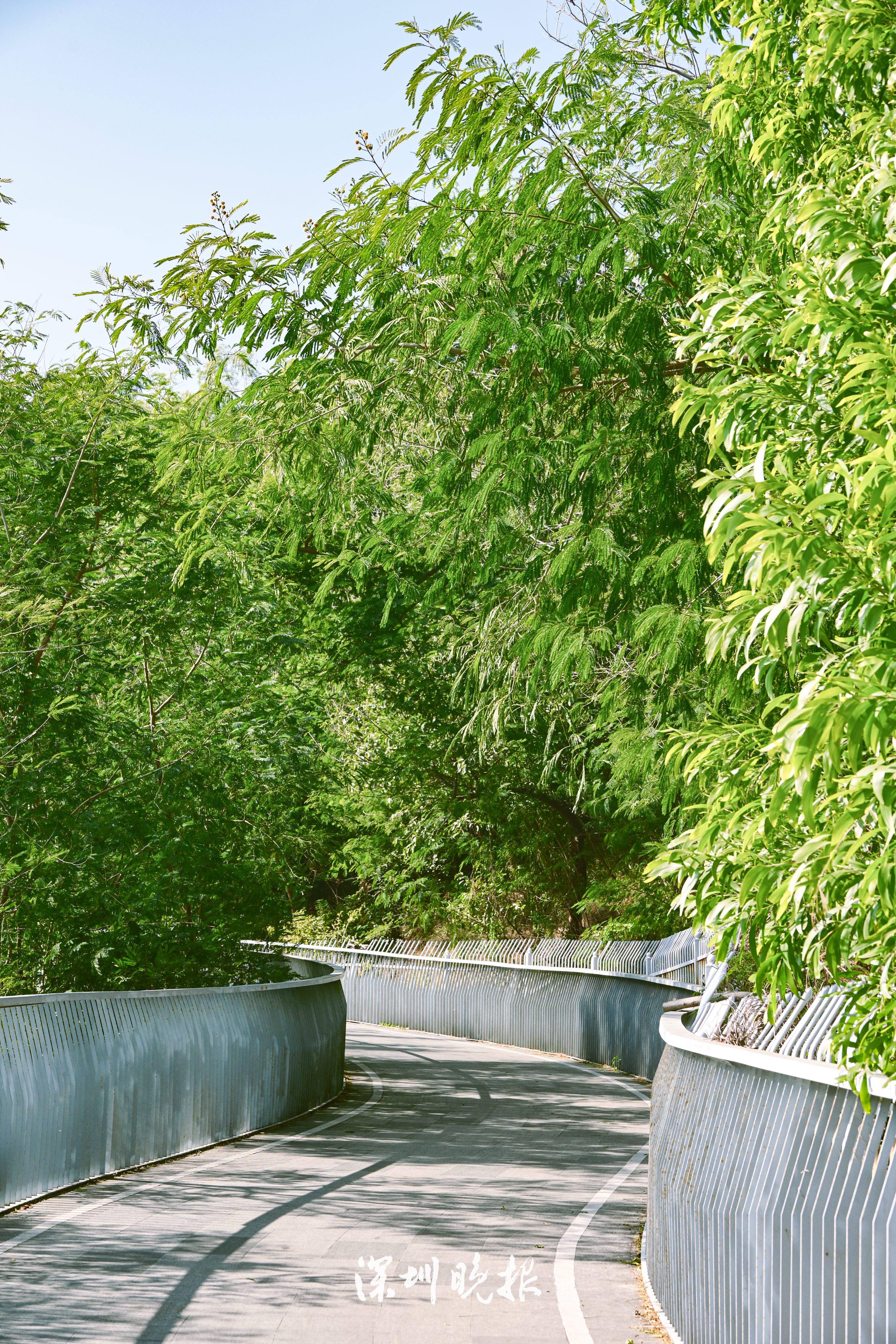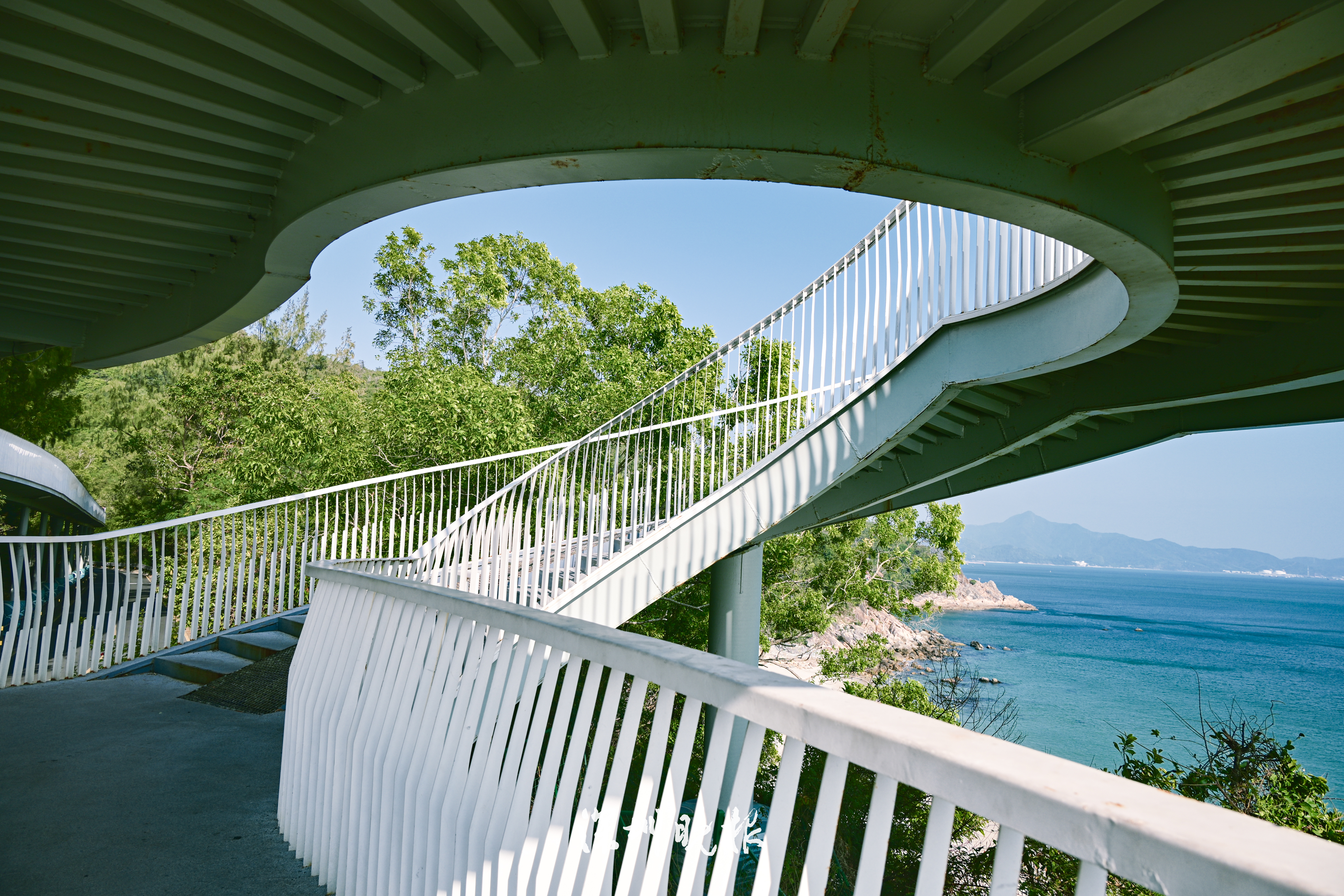沿着绿道西行,一处白色旋转楼梯跃然眼前——热门打卡点观海平台到了!