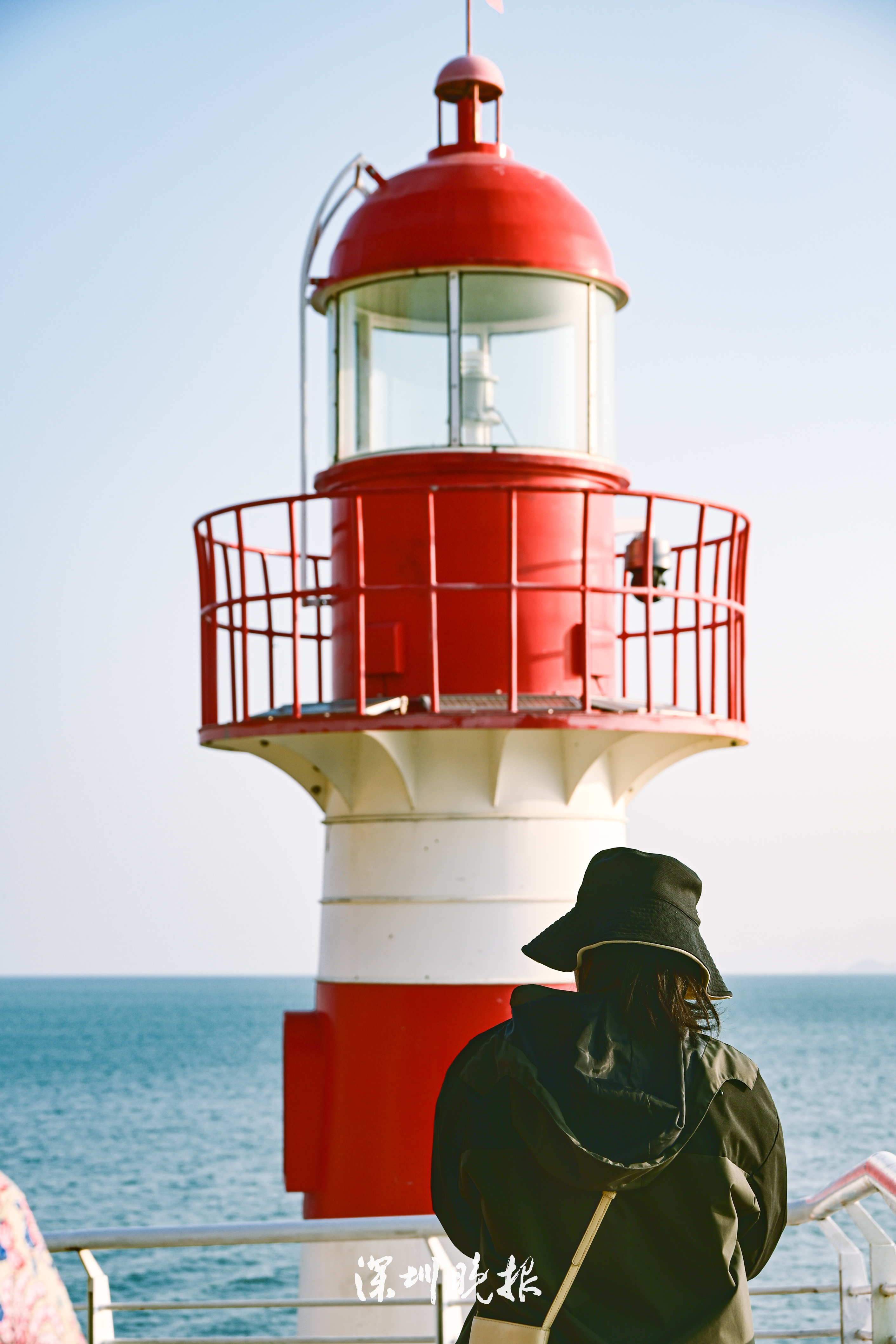 在栈道的东段,红白条纹相间的灯塔格外醒目。这抹鲜艳的色彩,像极了小时候在明信片里见过的远方风景。