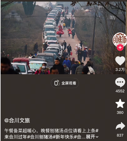 更值得一提的是,当地文旅的反应之快速,待客之真诚,值得一个大大的点赞。及时对接客流,到场维持秩序,赠送景区门票,用官方账号真诚喊话“欢迎来蹭饭”,介绍刨汤习俗与地方风物……合川文旅真正做到了不抢戏、不添乱的应对,让流量有了温度,让传统年俗得以被更多人看见,也让这份乡土温情被认真守护。