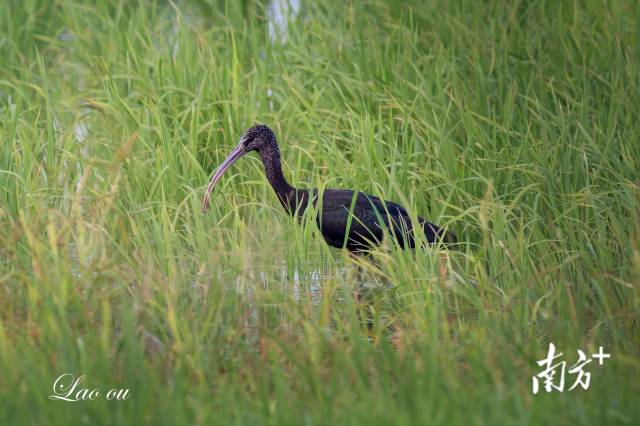 2025年10月,国家一级保护鸟类彩鹮造访广州南沙湿地。区干 摄