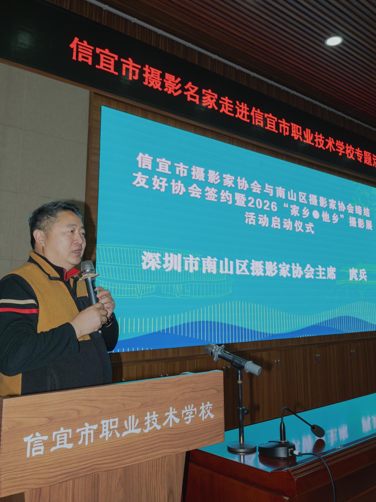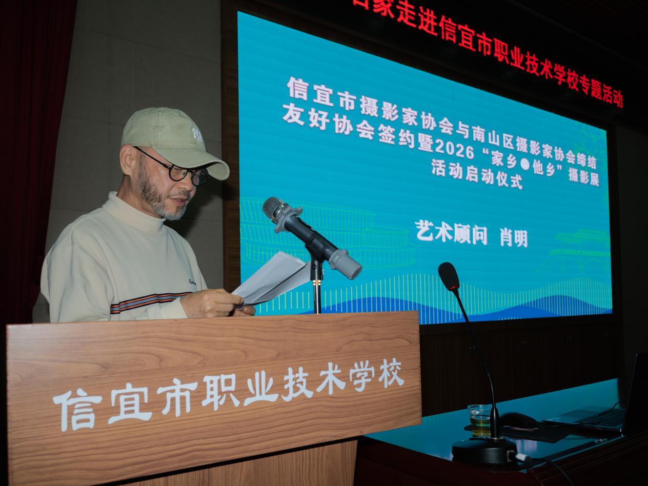 当日下午,活动重头戏——信宜市摄影家协会与深圳市南山区摄影家协会缔结友好协会签约仪式暨2026“家乡·他乡”摄影展启动仪式,在信宜市职业技术学校举行。