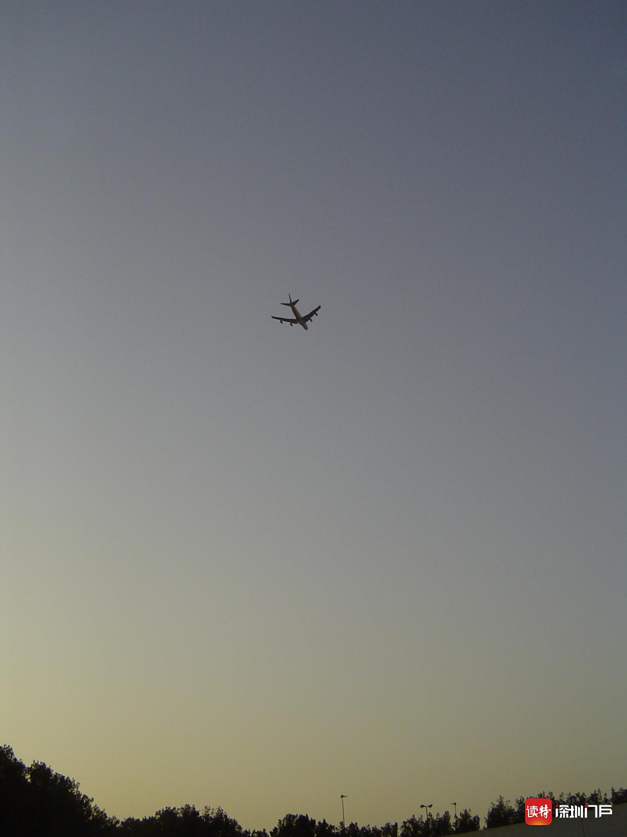 2005年9月11日,一架民航飞机飞过体育场上空。深圳特区报&读特记者 吴邦 摄