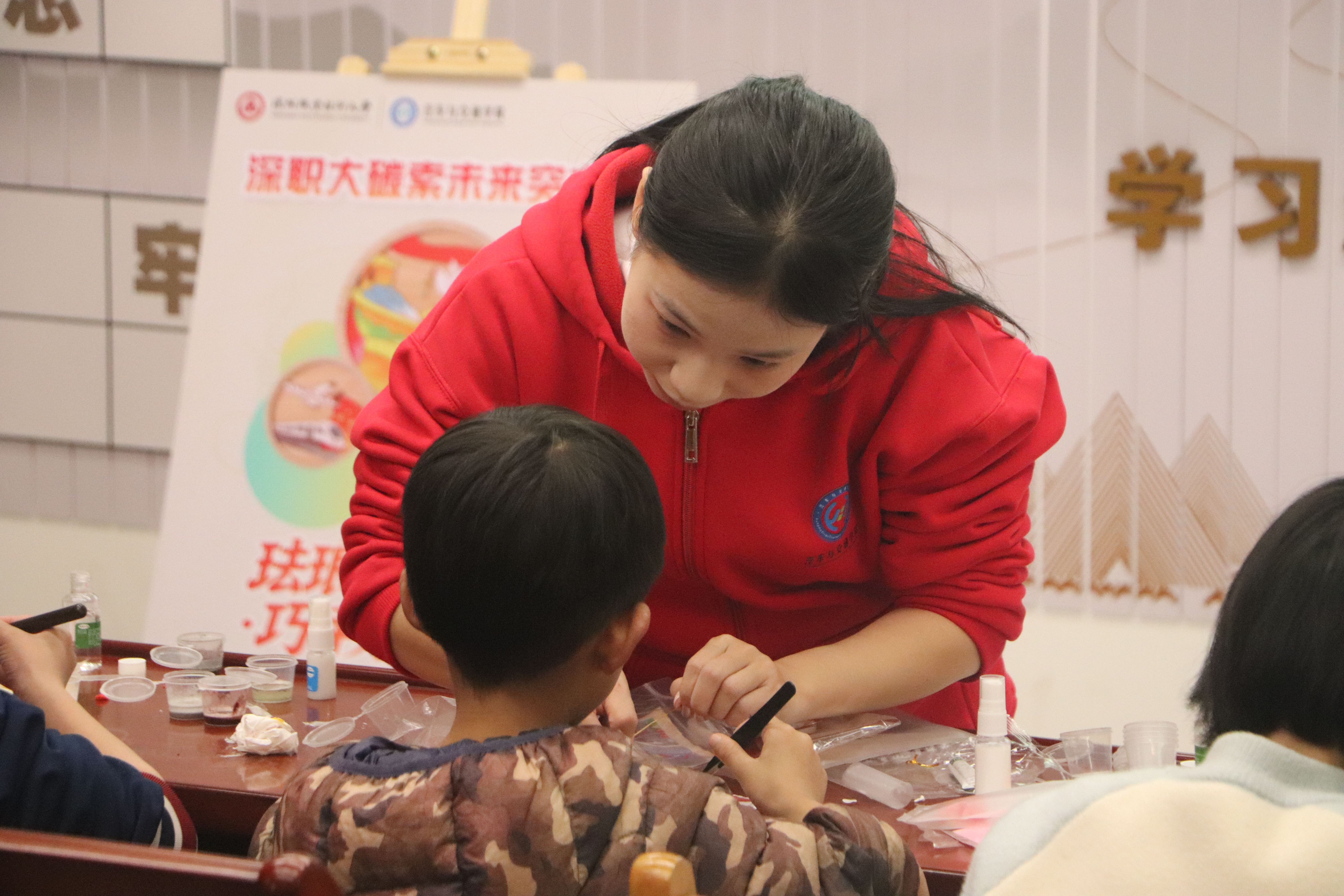 与此同时,“珐琅烙红心·巧手承基因”非遗掐丝珐琅体验则带来一场沉浸式的美育与环保课。参与者学习掐丝、点蓝等工艺,制作出蕴含美好寓意的杯垫与书签。活动全程采用环保釉料,让传统技艺在“绿色手作”中得以传承。一科技一文化,共同构筑起全方位、体验式的成长启蒙。