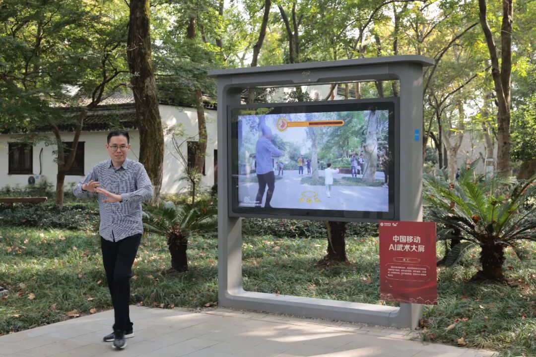 建造于1956年的乌镇人民公园,在5G+AI、5G+AR等科技技术的改造下,焕然一新,小桥流水人家的古典美景,叠加上未来智能社会的超现代主义场景,别具风格。记者在公园内看到,老人们可以跟着公园内的智能大屏中的学太极扇、易筋经、八段锦等养生操,大屏还能对学习者的情况进行智能分析与打分。而公园内的AI导览大屏还能与游客对话,并贴心的根据游客的游玩情况、兴趣爱好自动规划符合游客兴趣的游玩路线。