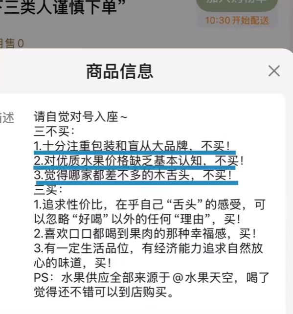 近年来流行“反向营销”或“个性化营销”。例如,陌陌曾用“不要追求改变,一成不变最好” “不要结交新朋友,最好高冷到没朋友”等反差感强的广告文案,吸引年轻群体。然而,“个性”与“没礼貌”有时只是一线之隔。捣捣果果“三不买”已超越营销创意范畴,其“请自觉对号入座”的措辞,更是对部分消费者充满敌意的指摘,是纯纯的无礼行为。