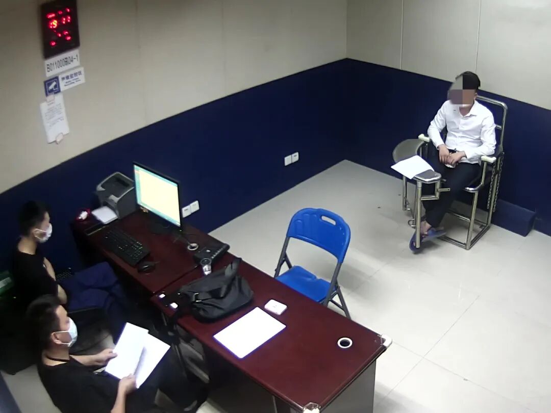 ▲民警审讯嫌疑人陈某