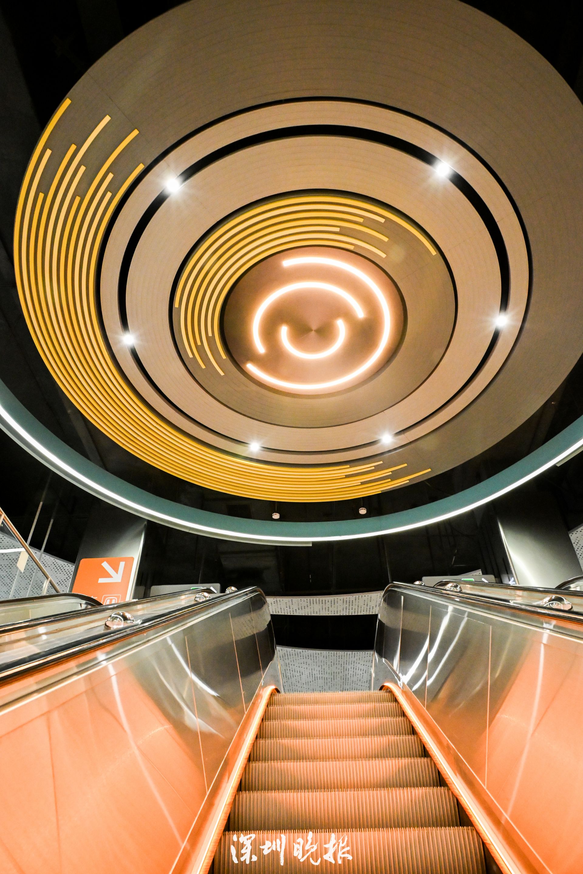 被誉为“科技线”的地铁13号线惊喜不断。深大地铁站的“未来隧道”赛博朋克感拉满,黄绿撞色的“超级旋涡”吊顶时髦吸睛。