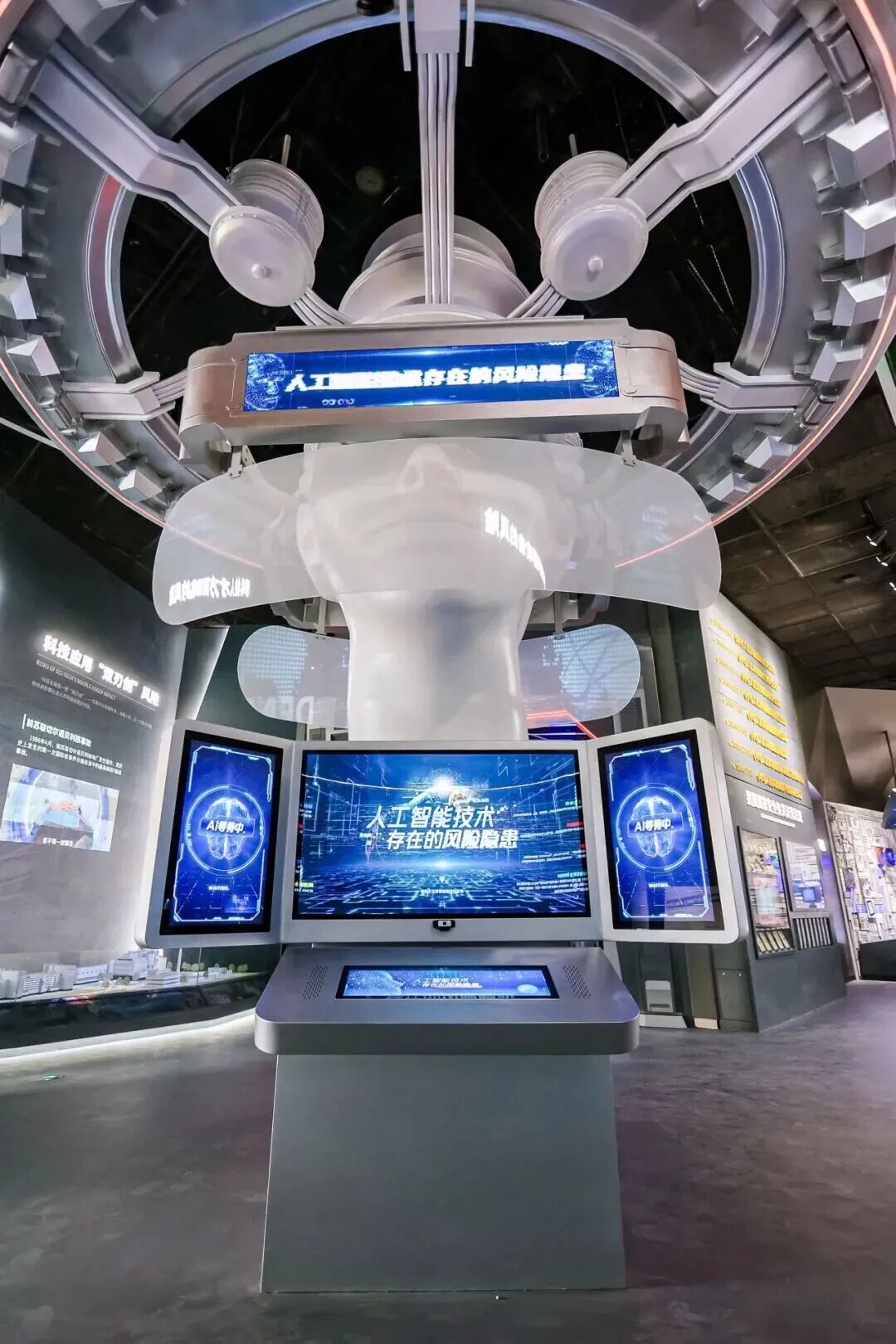 张艺谋导演的2026贺岁档大片《惊蛰无声》,核心的科技安全主题,与馆内三层的“科技安全”展厅高度契合!LED“国家安全”基石雕塑庄重有力,“危险之门”造型将技术被觊觎的紧张感具象化,激光窃密演示、AI换脸互动体验能帮助参观者读懂“科技护国安”的内涵。