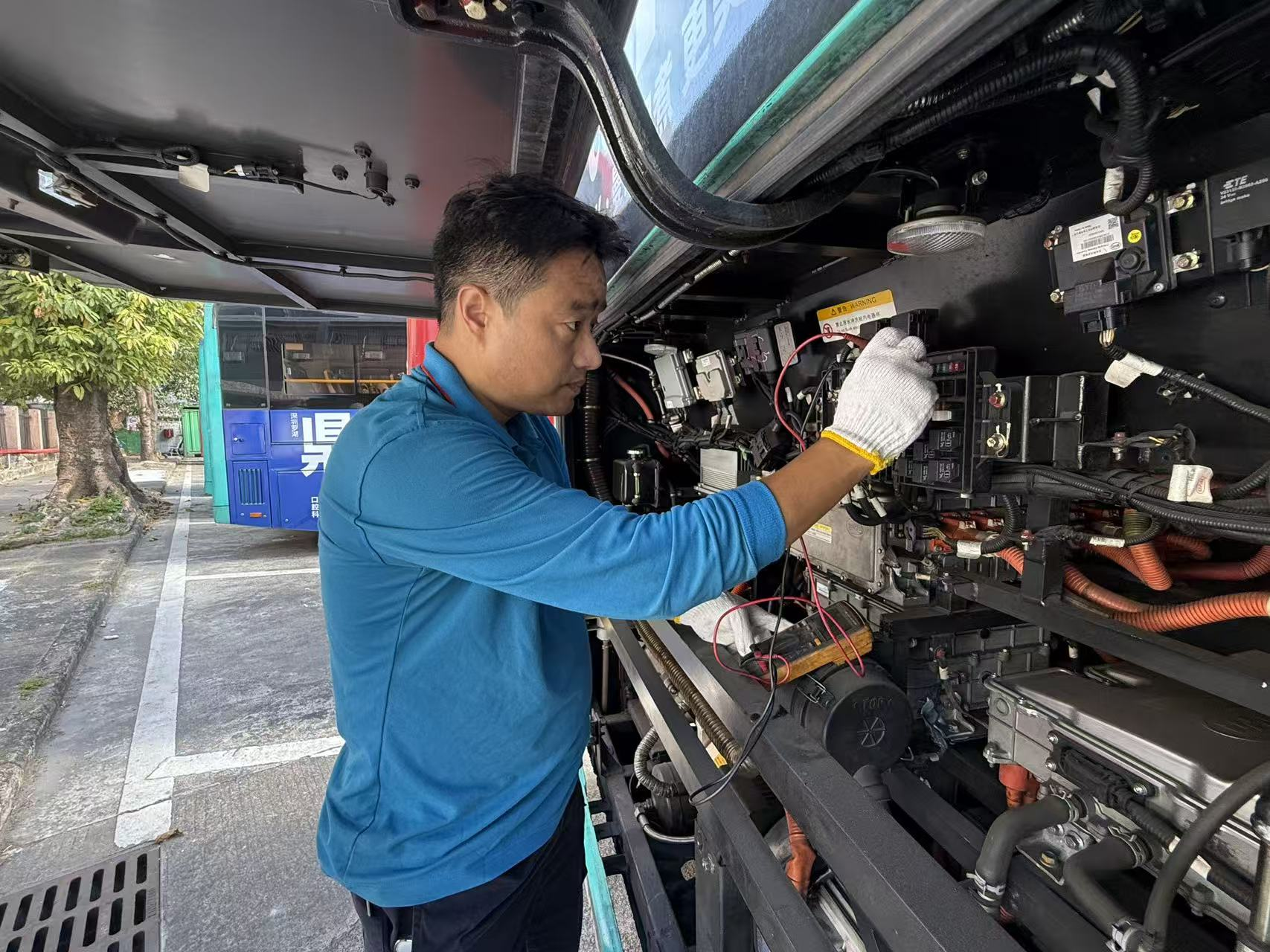 他手持工具穿梭在车辆之间,弯腰、俯身、下蹲,重复着看似枯燥却至关重要的动作,对公交车电池、电控、制动系统等核心部件逐一排查,对轮胎、灯光、线路等细节细致检修,绝不放过任何一处潜在隐患。“多一分细致,乘客就多一分安全。”这是吉守伟的坚守,他严格按检修标准,一丝不苟完成每辆车的维保,坚决杜绝“带病”车辆上路,用专业筑牢安全防线。