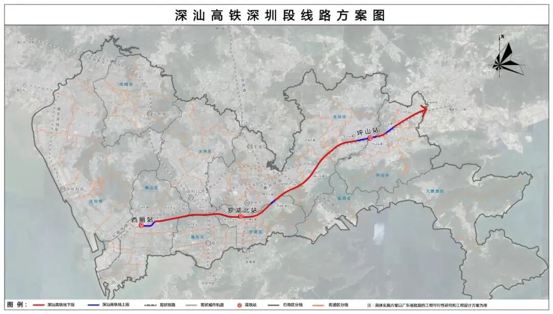 深圳卫视&壹深圳客户端记者注意到,9月4日,深圳市规划和自然资源局发布关于深汕高铁深圳段线路及占用基本生态控制线情况(草案)的公示。记者获悉,深汕高铁拟在深圳段设置三座车站。