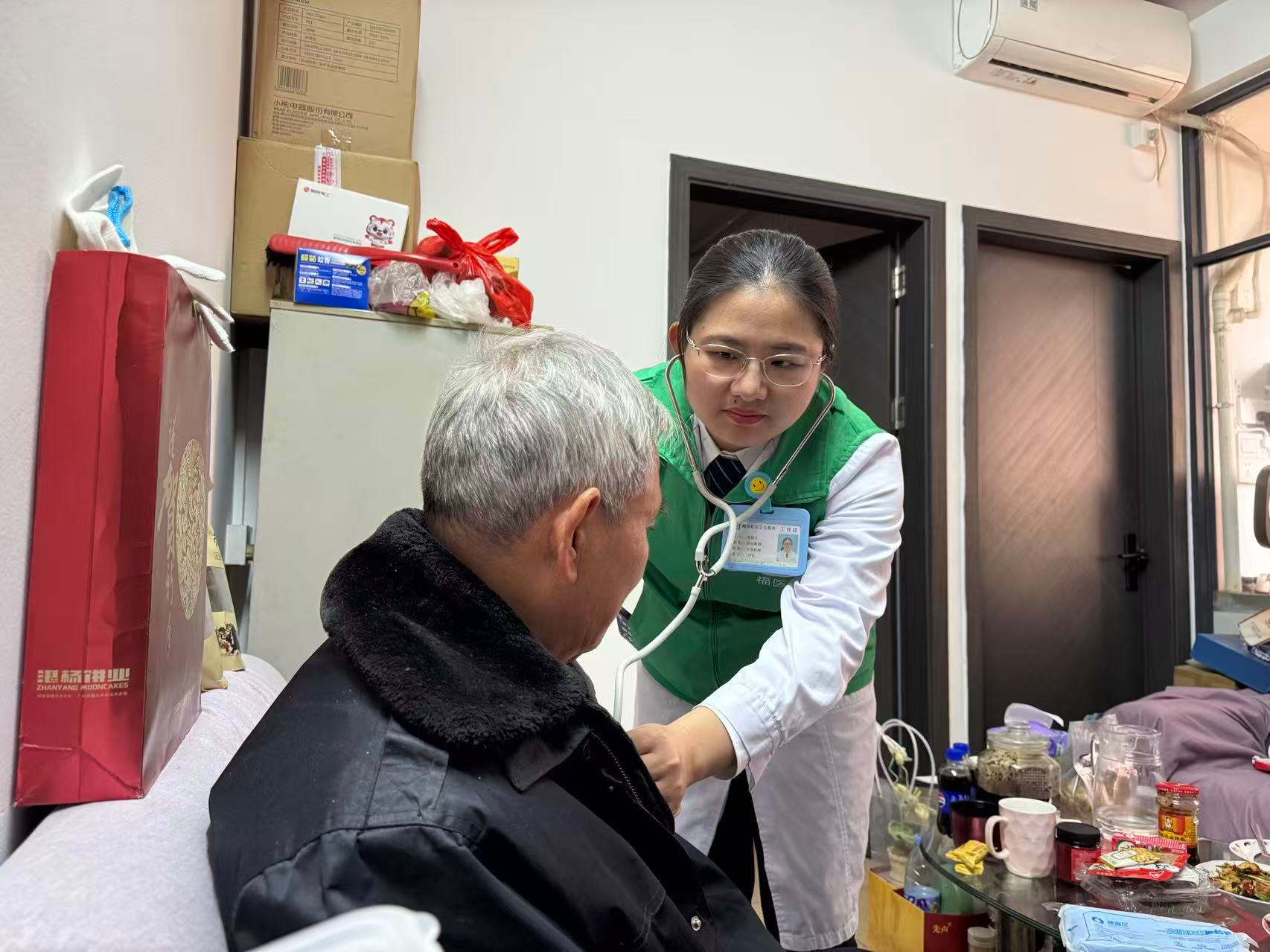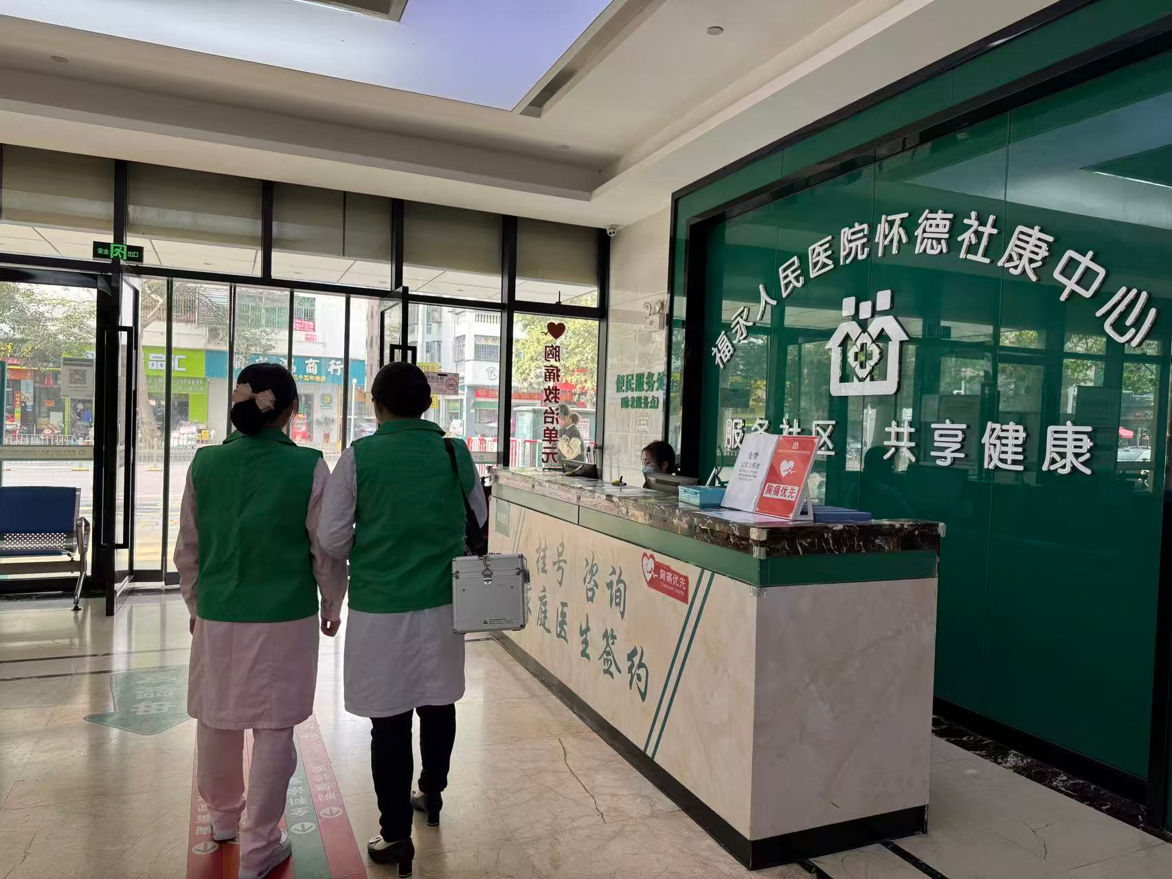 “张医生,我出院了,社康可以上门给我换药吗?”“可以的,唐叔,我们等会就过来。”怀德社康中心全科医生张丽兰放下电话后,背上出诊箱,跟郑丽娟护士一起奔赴与唐叔的约定。