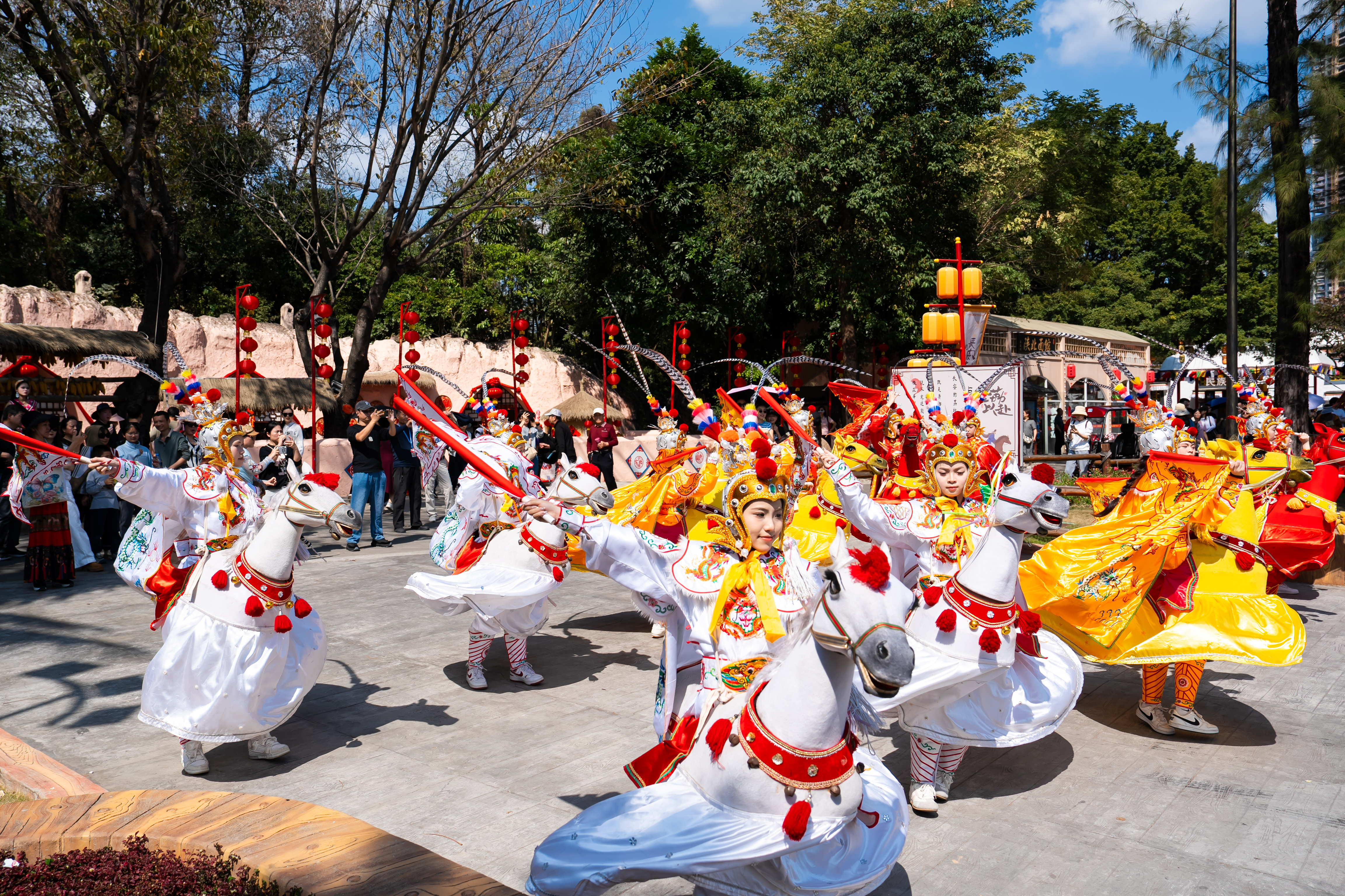 今年春节,深圳锦绣中华以“锦绣闹新春,非遗大庙会”为主题,打造新春灯会暨非遗中国年系列活动,其中三大全新项目——《翠湖幻境》、印象中国·非遗京剧沉浸街区与尚武云义骑射学院备受游客欢迎,更有百场非遗民俗演艺轮番登场,让游客在逛庙会、赏非遗、品年味中感受纯正中国年。