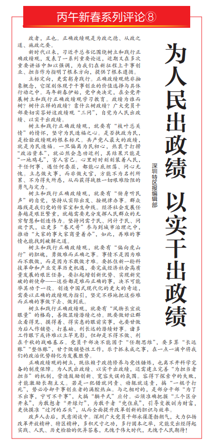 政声人去后,民意闲谈中。深圳广大党员干部永葆蓬勃朝气,大力弘扬改革开放精神、特区精神,多积尺寸之功,多行固本之举,定能交出经得起实践、人民、历史检验的优异答卷,无愧于伟大时代,无愧于人民期待!