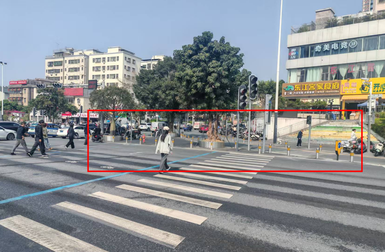 早晚高峰期间,这里曾是另一番景象:渠化岛和二次过街岛空间捉襟见肘,大量行人和电动车挤作一团;斑马线上人车混行,秩序混乱;行人闯红灯抢行等现象时有发生,不仅通行效率低下,过一个路口动辄需要十几分钟,更埋下了极大的安全隐患。拥堵,成了居民的“心头堵”,也成为了制约区域微循环畅通的瓶颈。