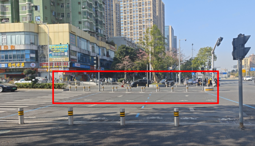 民有所呼,政有所应。坂田街道办事处迅速启动提升改造工程。工程围绕“扩容、提质、增效”核心,从多维度进行升级。通行空间方面,拆除渠化岛上的石材铺装及绿化带,改造为沥青路面,大幅扩大过街等候区域;新建道牙、护栏和分隔柱,避免人车混行。交通设施方面,重新施画清晰醒目的路面标线;悬杆上增设LED警示屏,实时发布路况与安全提示;启用右转专用道斑马线警示屏,强化对过街行人的保护。