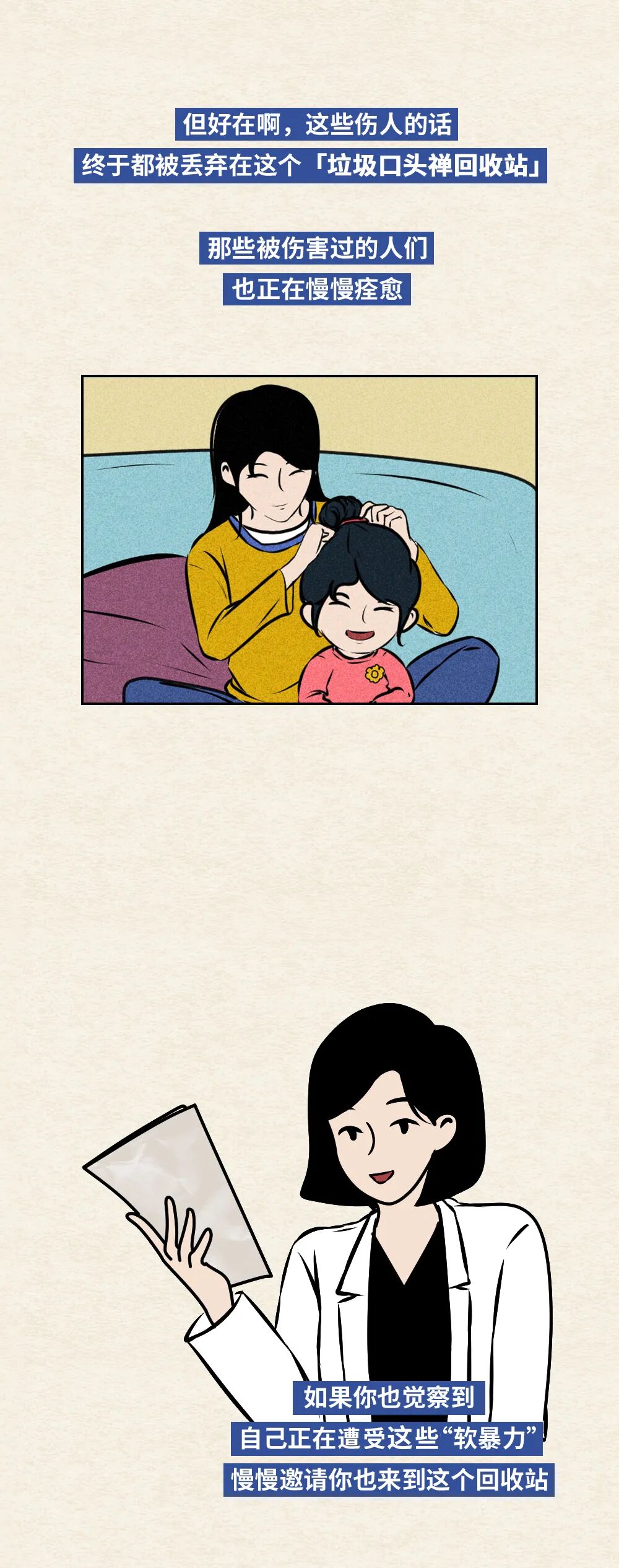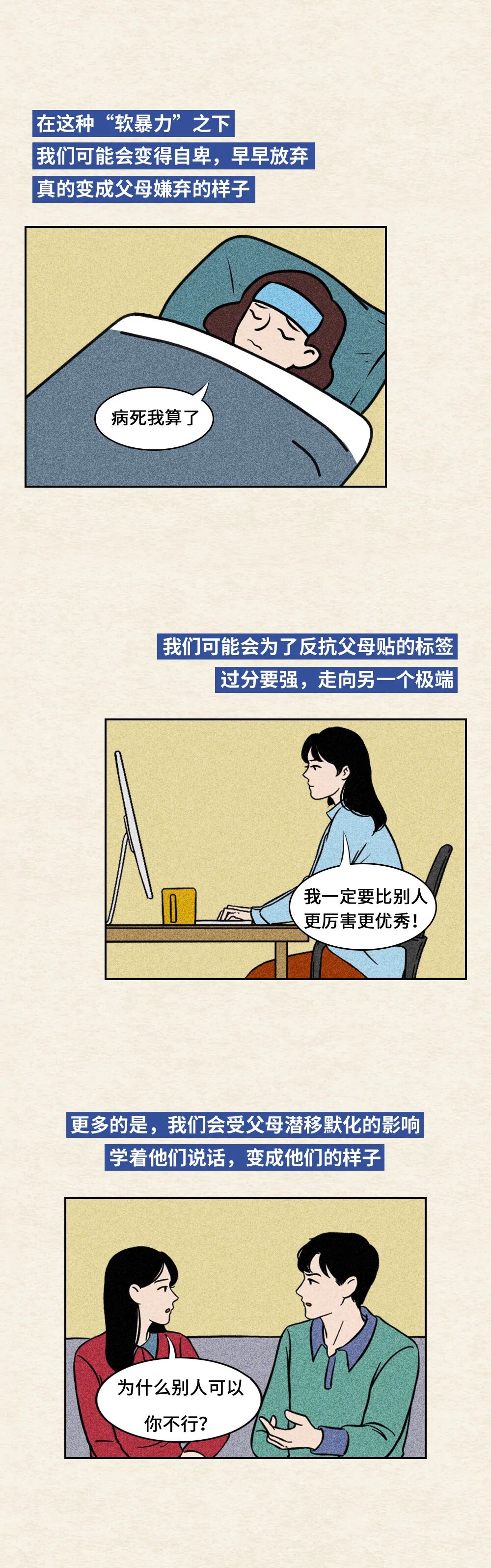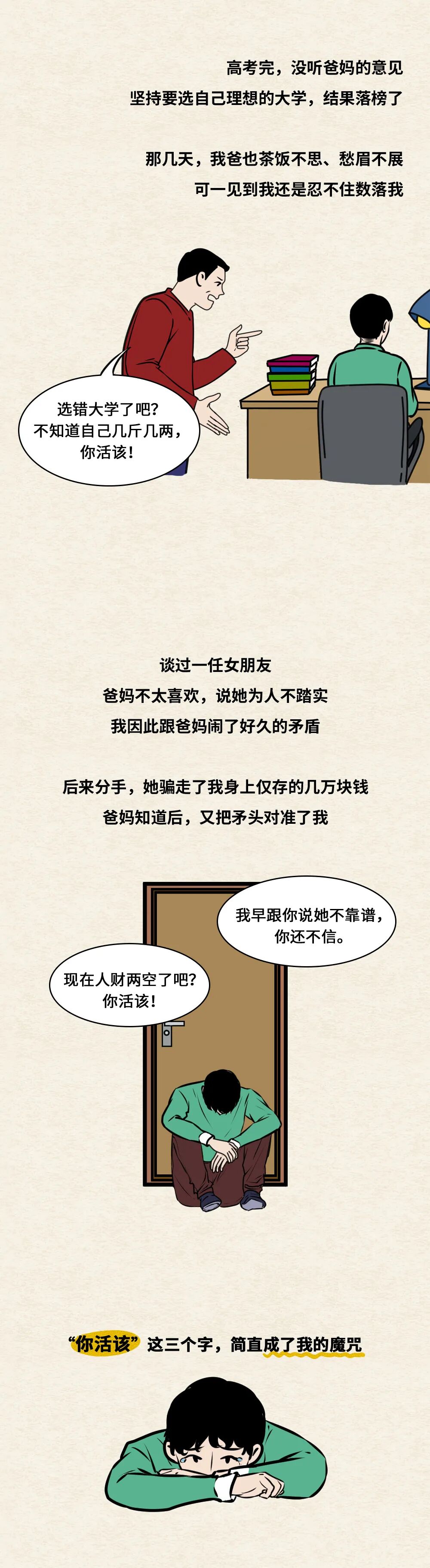 这篇漫画我们收集到了很多人小时候常听到的口头禅, 在这么多的故事里,我们发现,那些被不停否定、挖苦、蔑视和羞辱的孩子,内心都有一个大窟窿。