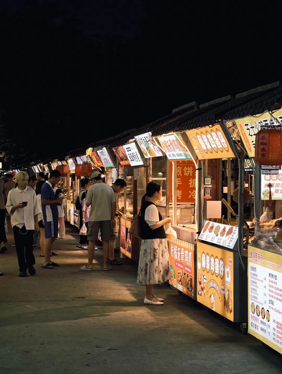 100多米长的街道上,上百个摊位紧密相连,越晚越热闹,不用奔波就能尝遍南北风味。