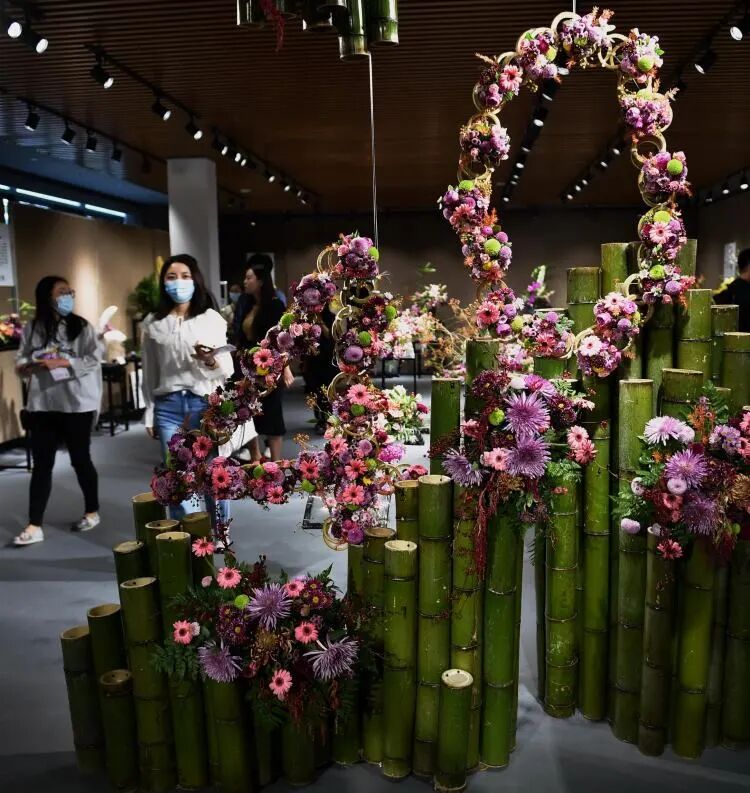 本次展览共分为五个区域,三种插花流派风格,分别为现代花艺设计、中国传统插花艺术、日本小原流花道,包含三个大型现代架构作品、22个中国传统插花作品以及33个小原流花道作品。