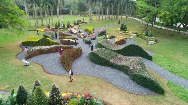 其中,主景点阳光草坪在开敞的草坪区域布置菊花形状的迷宫,搭配抗疫纪念花境等三个主题艺术花境,让人徜徉其中感受菊花多姿多彩的魅力。