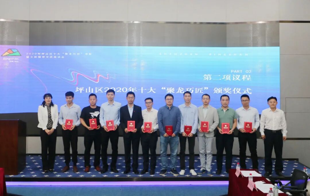 活动首先举行了2020年坪山区首届十大“聚龙巧匠”颁奖仪式经前期广泛宣传发动、申报推荐专家评审、社会公示等评选程序谭荣华等10名同志被评为2020年度深圳市坪山区“聚龙巧匠”