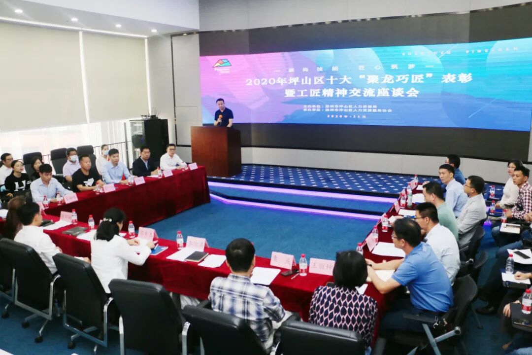 11月26日下午,2020年坪山区十大“聚龙巧匠”表彰暨工匠精神交流座谈会成功举行。坪山区首届十大“聚龙巧匠”以及深圳技术大学、辖区职业技术学校、企业代表等共50人参加。