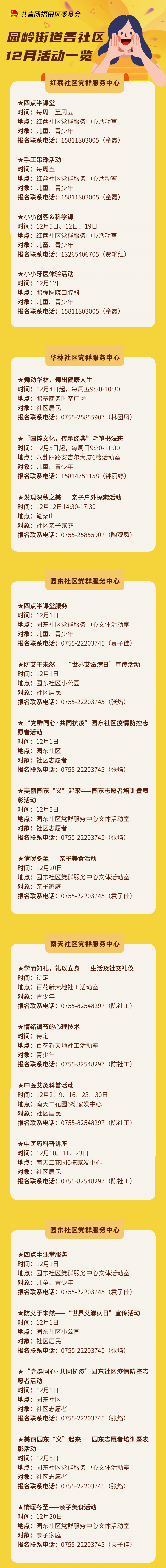 12月份,园岭街道各社区为辖区 青少年、志愿者、居民 准备了许多有趣又有(来源:福田图书馆) 编辑 昌慧 意义的活动。