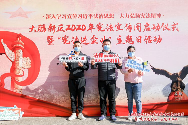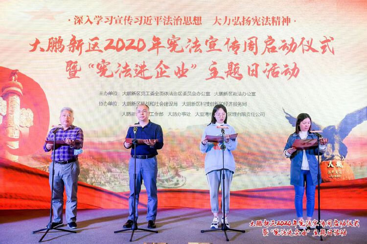 2020年“宪法宣传周”期间,大鹏新区还将开展政法开放日、“宪”在直播、宪法宣誓、法治文艺汇演等主题鲜明、形式多样、贴近市民的宪法宣传活动,推动宪法宣传“飞入寻常百姓家”。