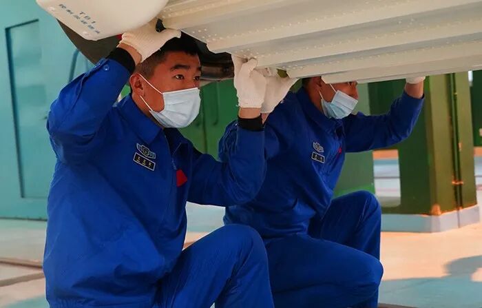 西昌卫星发射中心科技人员进行高分十四号卫星发射前准备。白肖飞 摄