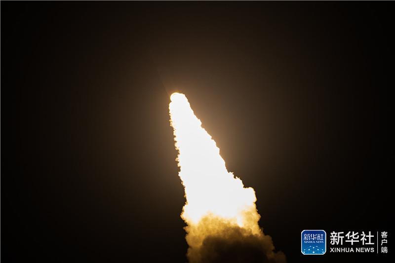 ↑12月10日4时14分,我国在西昌卫星发射中心用长征十一号运载火箭,以“一箭双星”方式将引力波暴高能电磁对应体全天监测器卫星送入预定轨道,发射获得圆满成功。新华社发(郭文彬 摄)