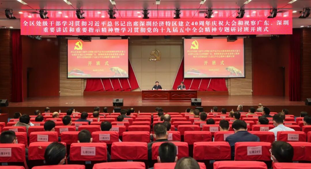 12月9日下午,坪山区处级干部学习贯彻习近平总书记出席深圳经济特区建立40周年庆祝大会和视察广东、深圳重要讲话和重要指示精神暨学习贯彻党的十九届五中全会精神专题研讨班开班,区委书记陶永欣出席开班式并作动员讲话,区领导徐国东主持开班式,全区处级干部、区属企业班子成员参加了开班式。